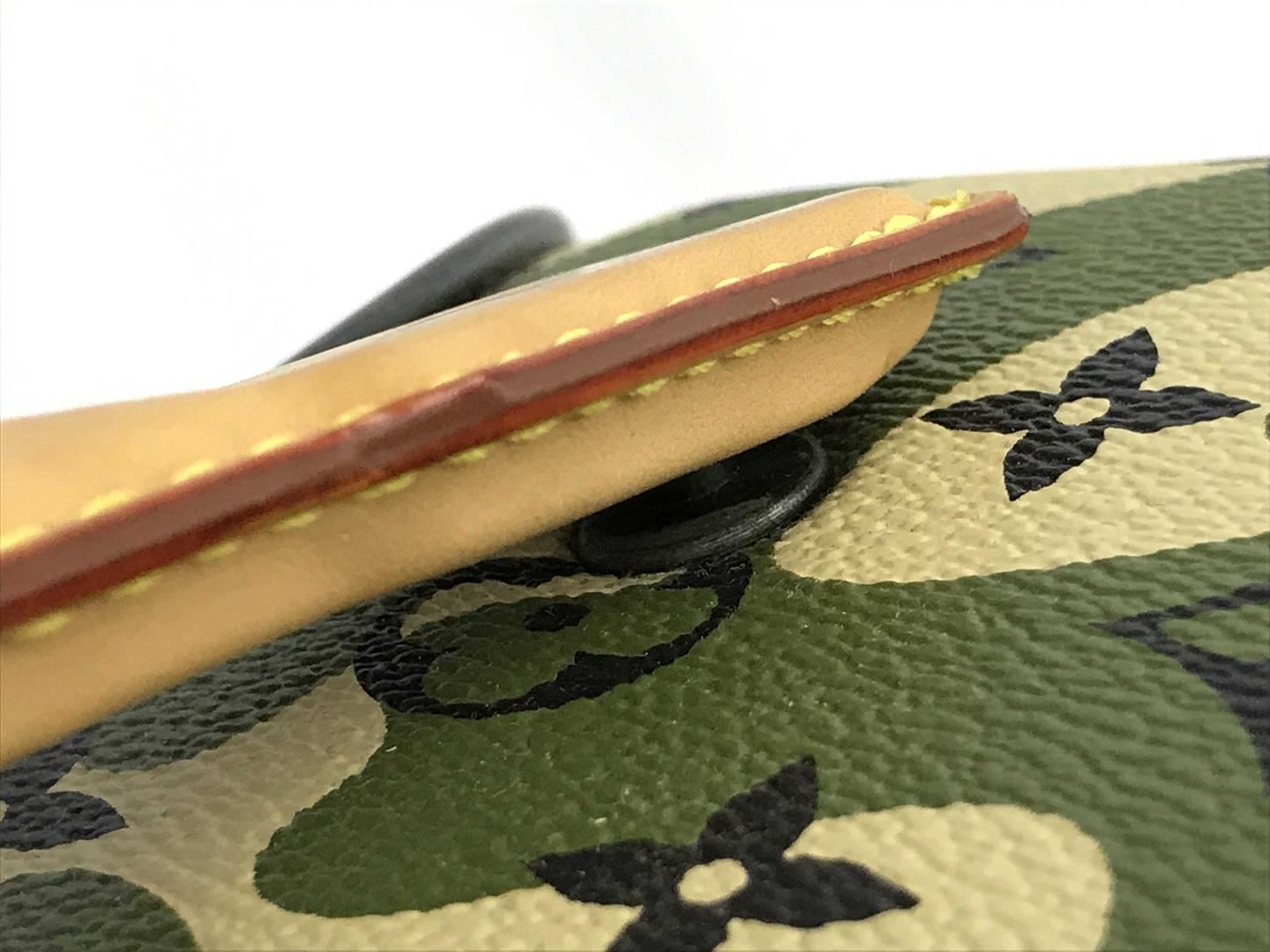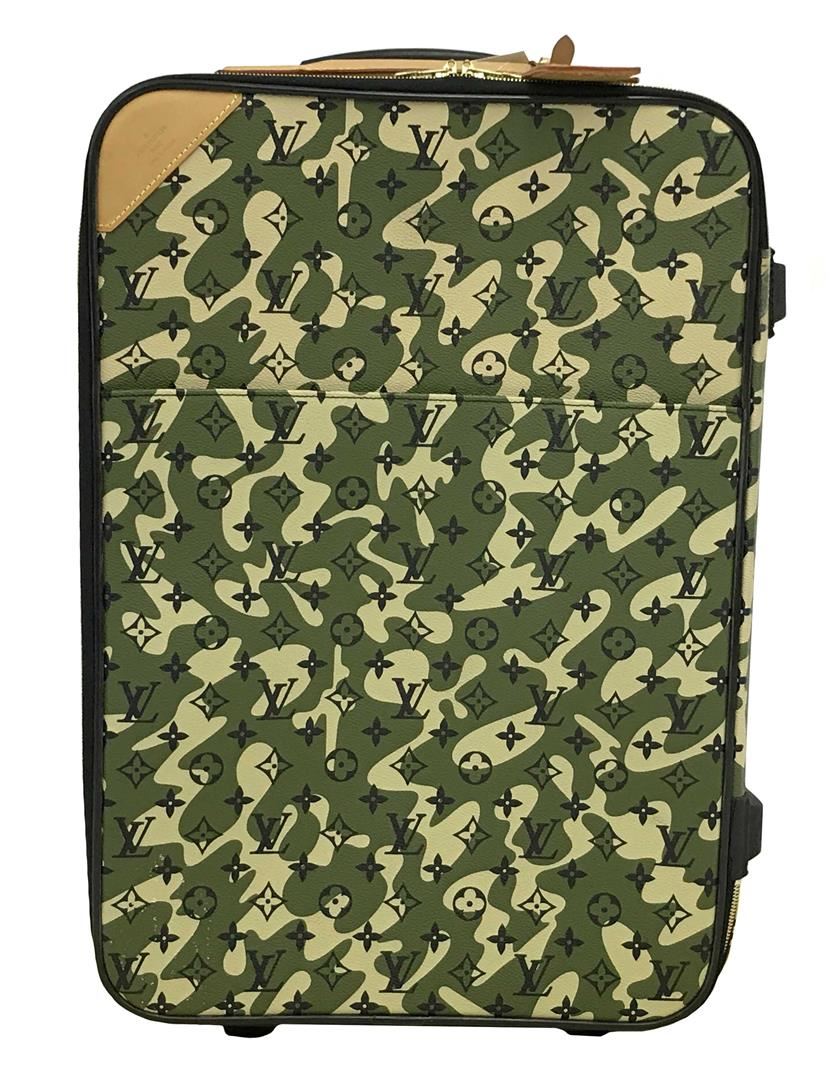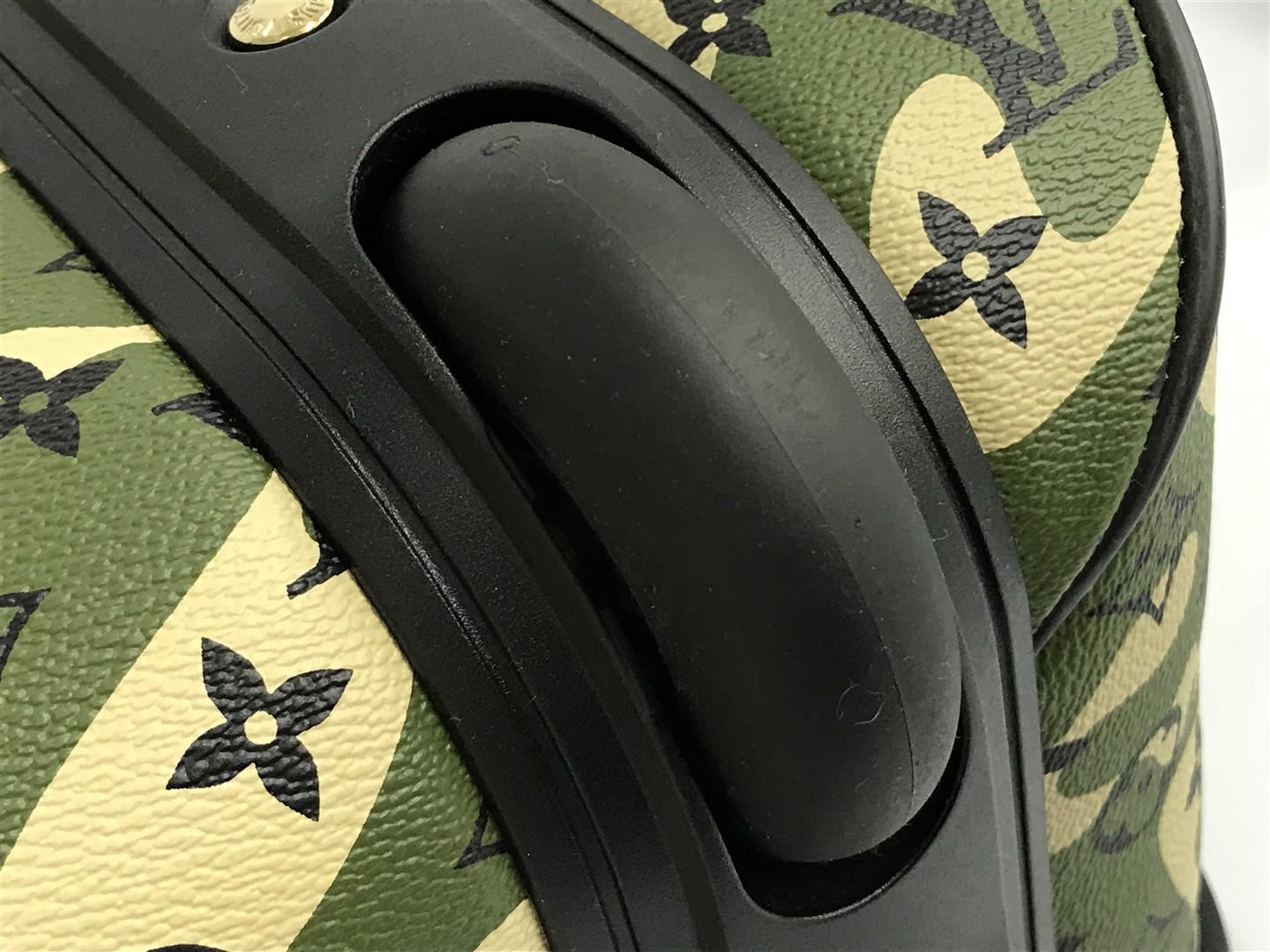 Men's olive green and multicolor Monogramouflage coated canvas Louis Vuitton Pagasa 60 with gold-tone hardware, retractable top handle, dual leather side handles, tan vachetta leather trim, dual exterior pockets at front; one with concealed zip closure, d