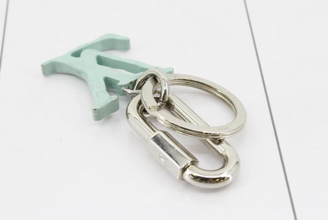 One Louis Vuitton Green Resin Metal Initiales Facettes Keyholder. Item is sold AS-IS. All available information is listed in the description and shown in the photo. Men's green resin Louis Vuitton Initiales Facettes keyholder with silver-tone hardware. Length: 5.5" Width: 1.75"