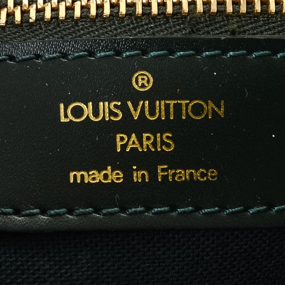 Louis Vuitton Green Taiga Leather Epicea Yaranga Messenger Bag with gold-tone hardware, green canvas single flat adjustable messenger strap, green canvas interior lining, one interior slip pocket and one zipper pocket and overall push-lock buckle closure.