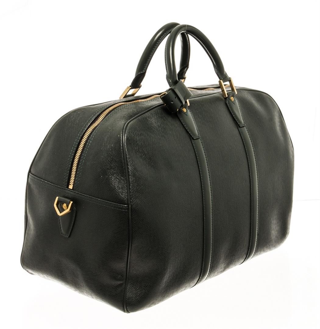 One Louis Vuitton Green Taiga Leather Kendall GM Bag. Item is sold AS-IS. All available information is listed in the description and shown in the photo. louis vuitton green taiga leather kendall gm bag with the kendall gm features a taiga leather body, rolled leather handles, and a top zip closure. Height: 12.6" Width: 17.7" Depth: 8.7, Handle Drop: 4.7" / 32 x 44.95 x 22.09 Cm