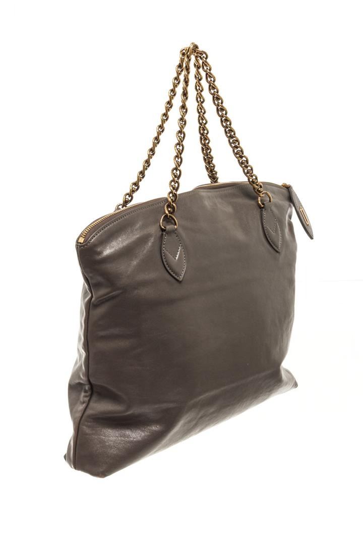 One Louis Vuitton Grey Leather Lockit Chain Shoulder Bag. Item is sold AS-IS. All available information is listed in the description and shown in the photo. louis vuitton grey leather lockit chain shoulder bag with features signature lockit chain strap, side padlock closure, subtle embossed lv logo at its center, and bronze-tone hardware accents. its zip closure opens to a black leather-lined interior with a zip pocket perfect for storing your daily essentials. Height: 12" Width: 13.5" Depth: 2.5" , Handle Drop: / 30.48 x 34.29 x 6.35 Cm