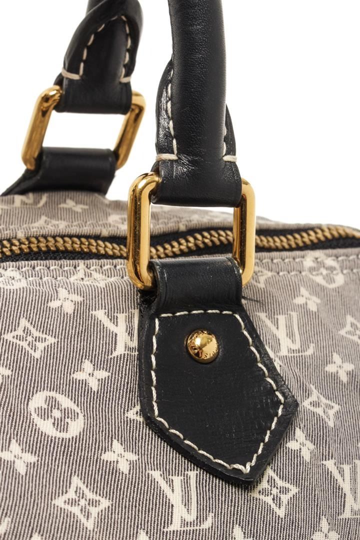 One Louis Vuitton Grey Monogram Mini Lin Speedy Bandouliere 30 Boston Bag. Item is sold AS-IS. All available information is listed in the description and shown in the photo. Louis Vuitton Grey Monogram Mini Lin Speedy Bandouliere 30 Boston Bag with blue top handle, gold tone hardware, zipper closure, lock and fabric lining. This does not come with a strap, the lining is stained, there is a burn whole on the exterior fabric. Please refer to photos. Dimensions: 20.5cm x 30.5cm x 18cm / 8.07" X 12.00" X 7.08" Inches