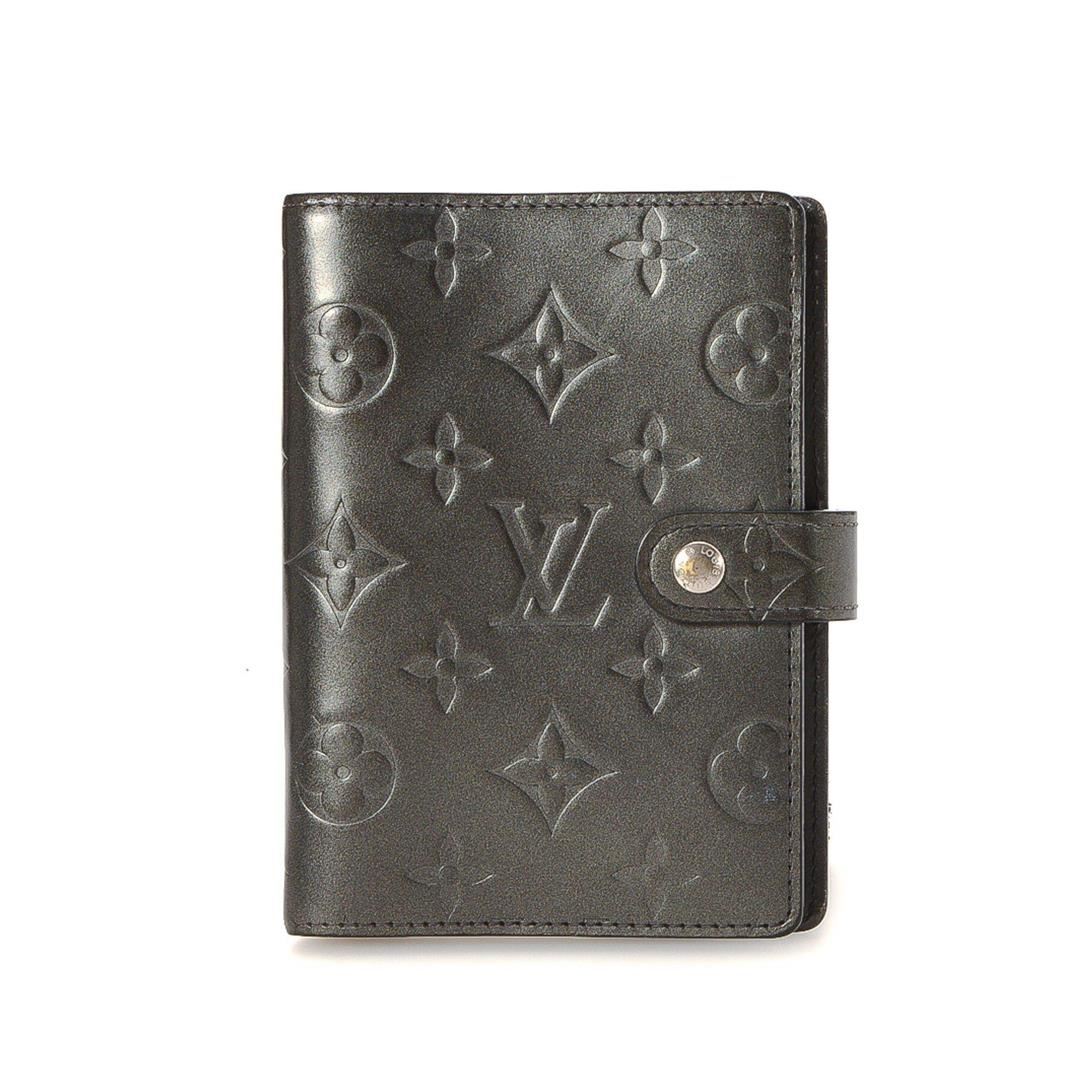 Louis Vuitton Grey Monogram Small Ring Agenda Cover Wallet with gold-tone hardware, monogram material, tan vachetta leather trim, snap closure. Measurements: Length: 17.2 in / 44 cm Width: 5 in / 13 cm 14.1 in / 36 cmCONDITION: Pre-Owned Good overall, please see photographs for detail.