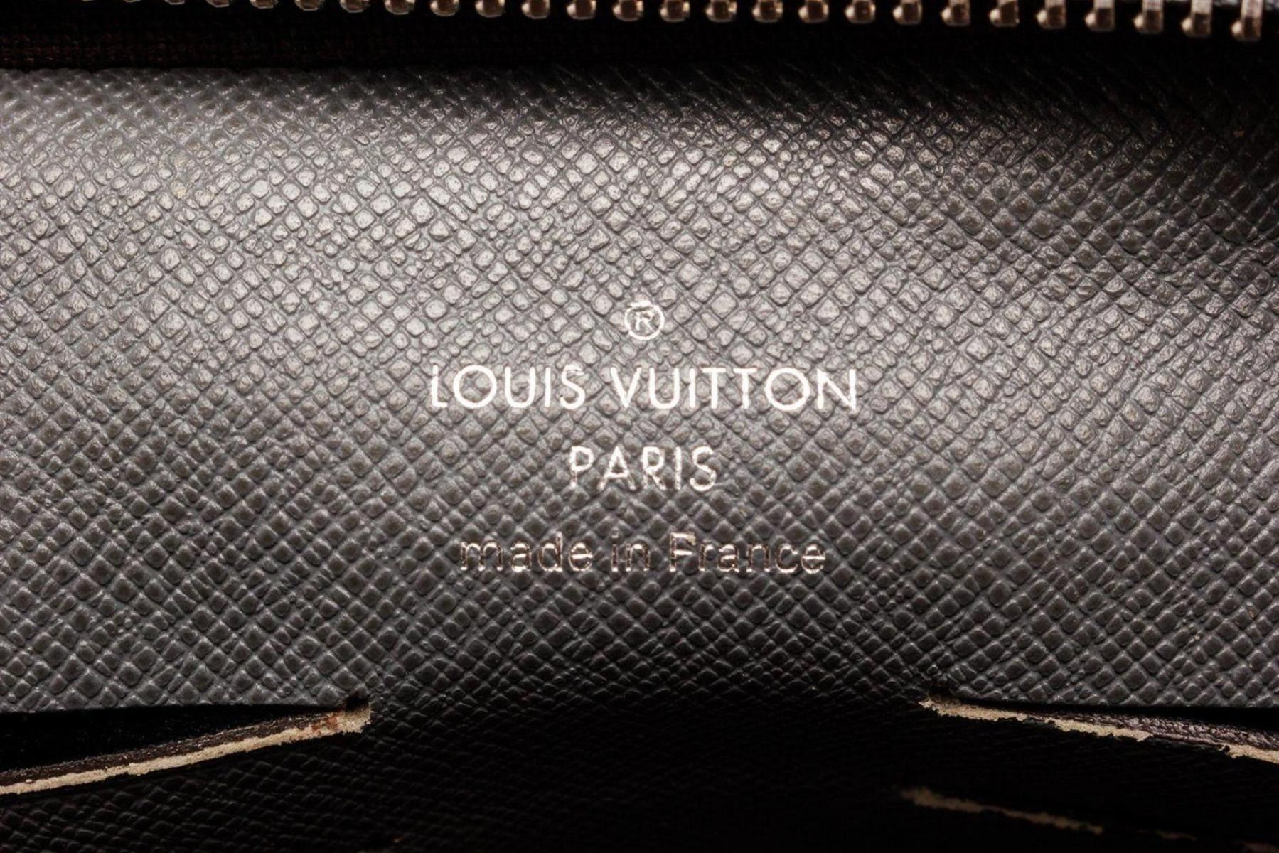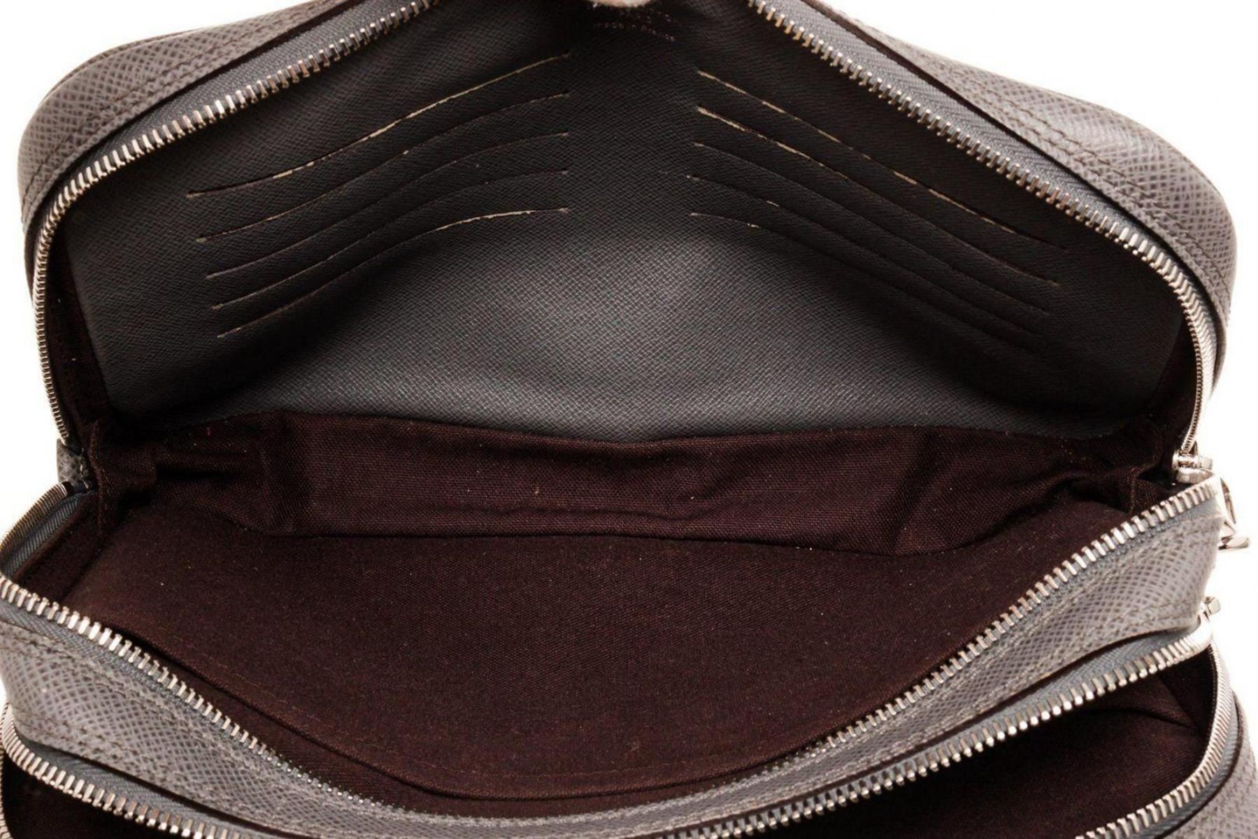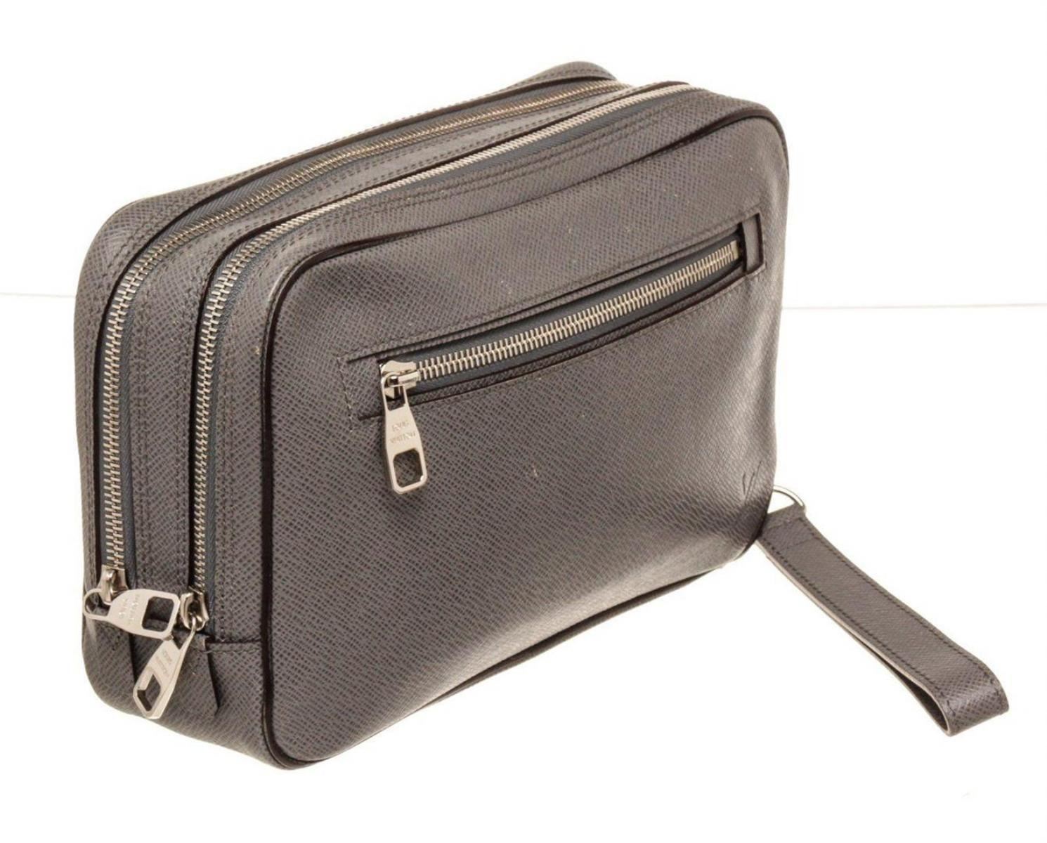 Louis Vuitton Grey Taiga Leather Neo Pavel Clutch Bag with material leather, silver-tone hardware, exterior zip pocket, interior slip pocket, and zipper closure.