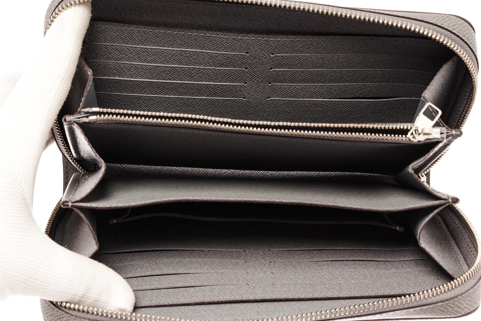 Louis Vuitton Grey Taiga Leather XL Zippy Wallet. All available information is listed in the description and shown in the photos. Louis Vuitton Grey Taiga Leather XL Zippy Wallet with gold-tone hardware, trim tan vachetta leather, slip pocket in interior, zip around closure opens to card slots, Zip around closure.