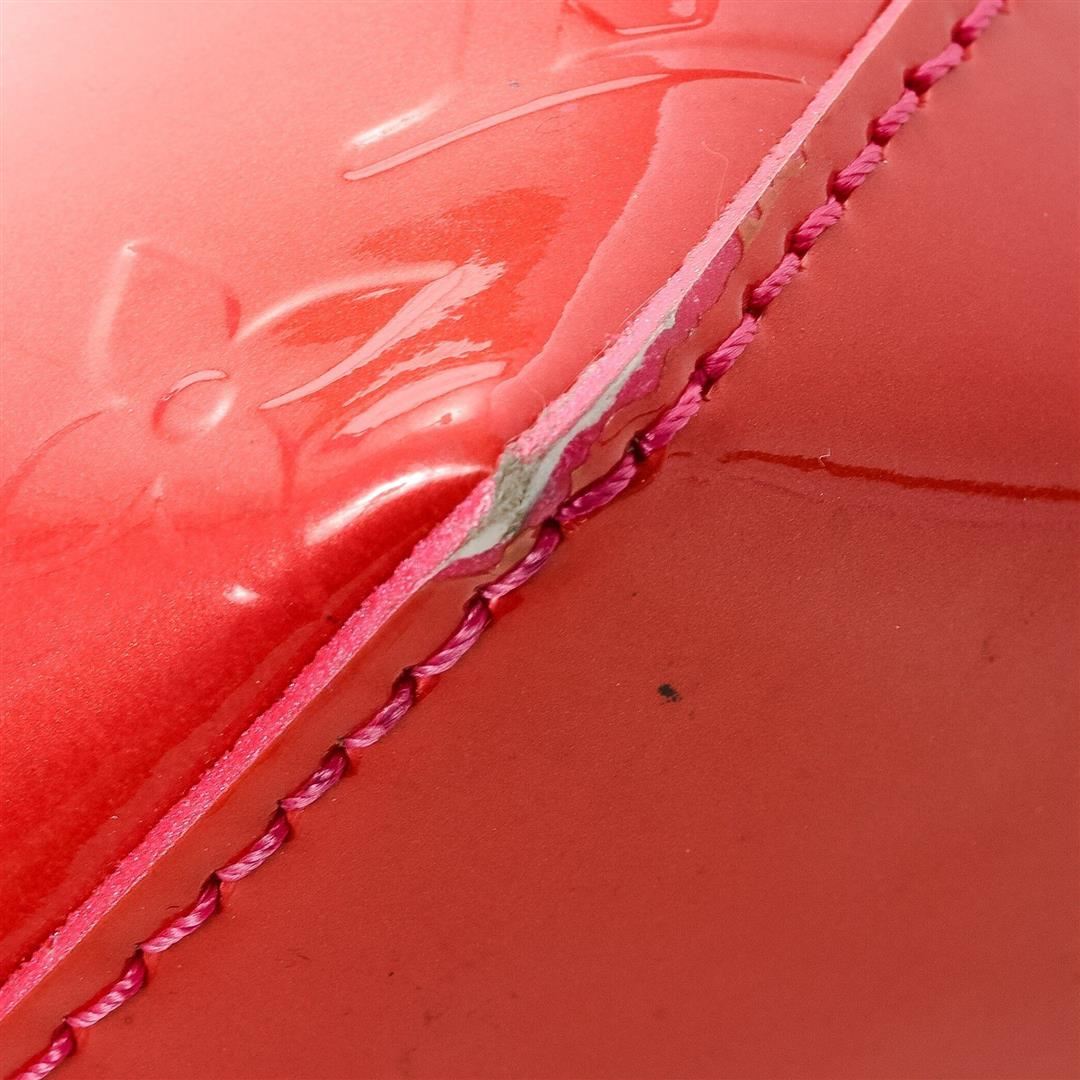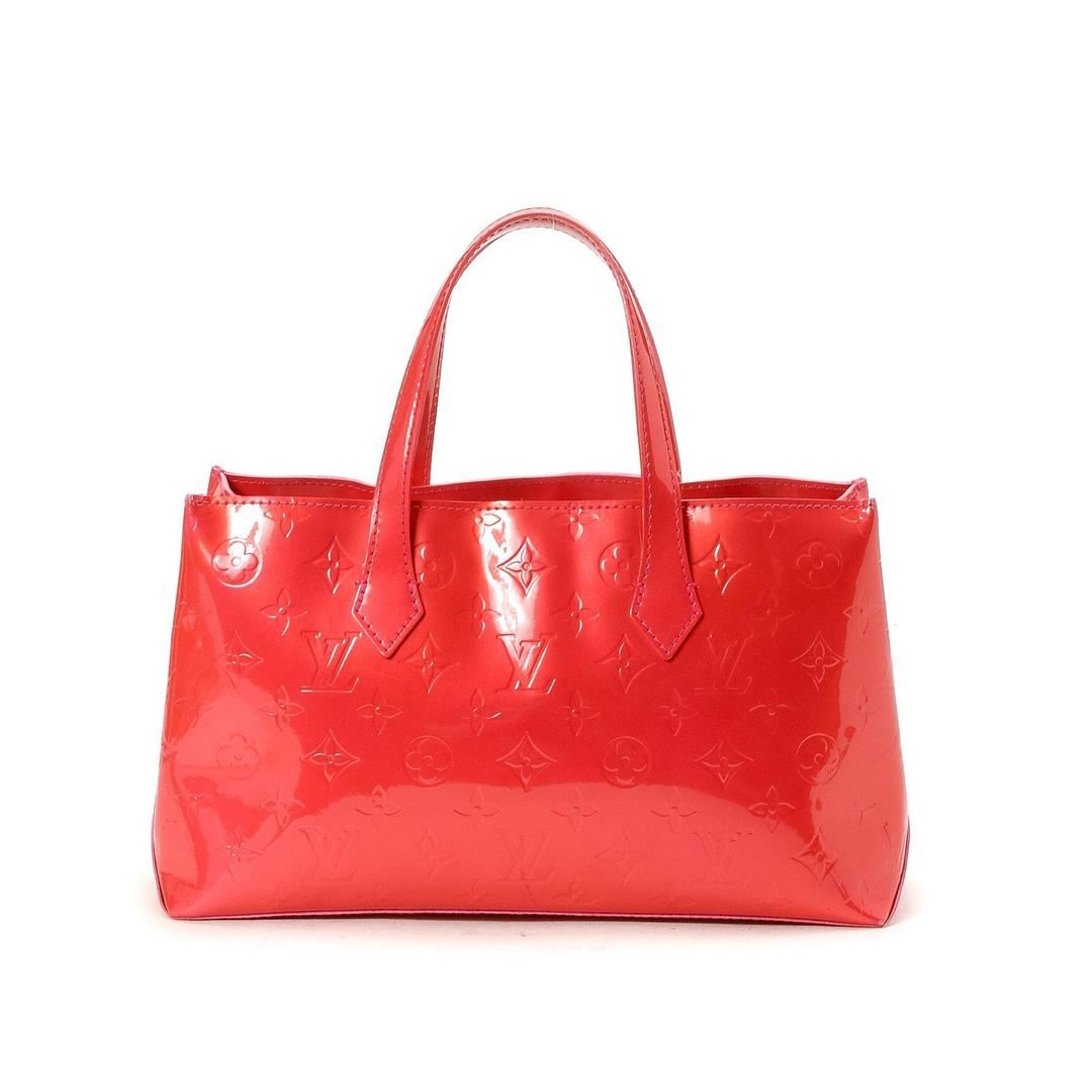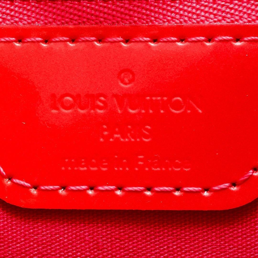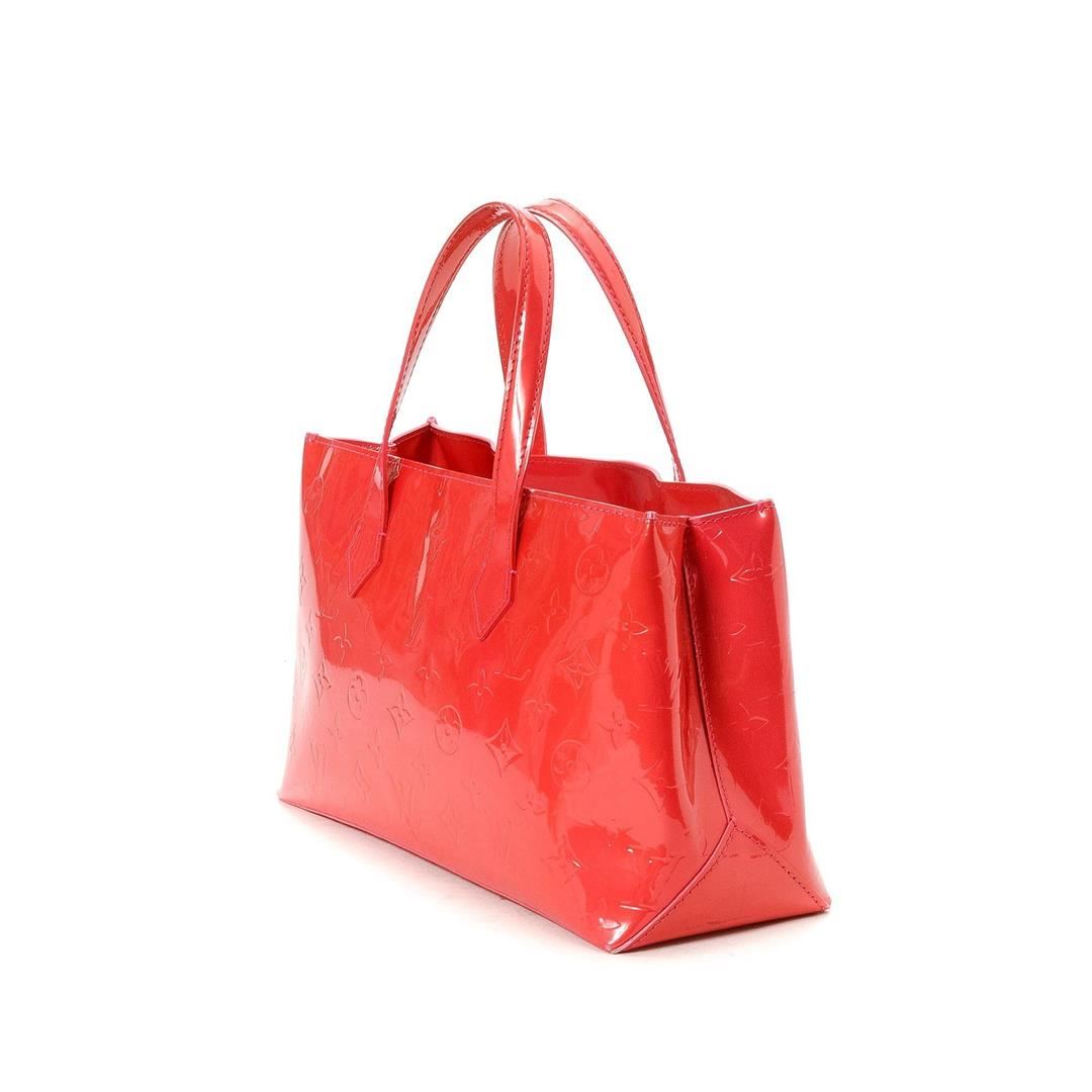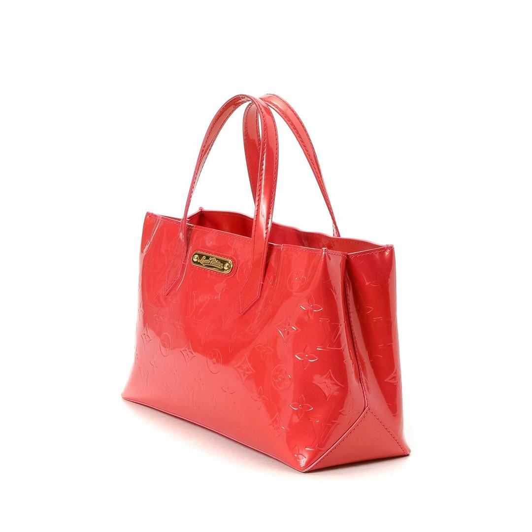 Louis Vuitton Hot Pink Vernis Leather Wilshire PM Tote Bag with gold-tone hardware, pink canvas interior lining, one interior zip pocket, dual top handles and overall clasp closure.