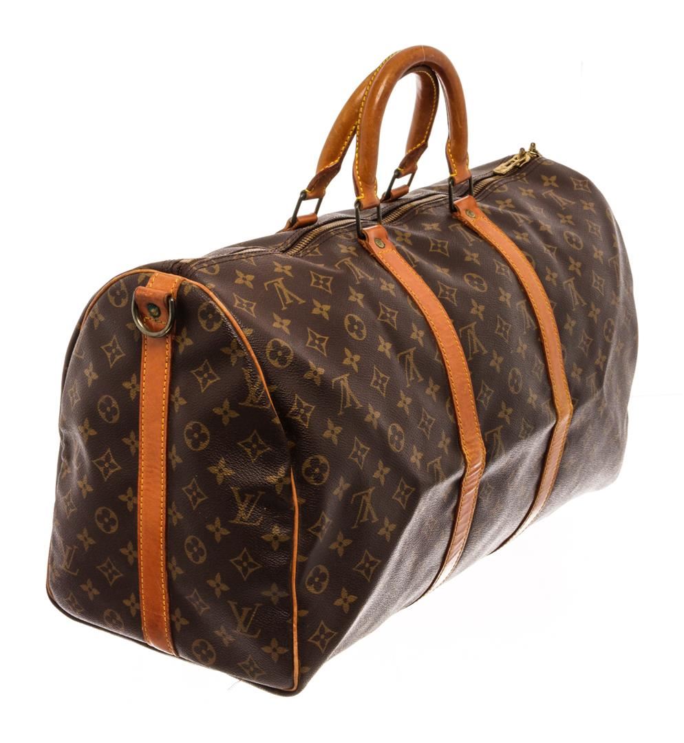 Louis Vuitton Keepall 50 Bandouliere Duffle Bag. Brand: Louis Vuitton, Style: Keepall 50 Bandouliere, Type: Duffle Bag, Exterior color: Brown Monogram, Exterior material: Coated Canvas, Interior color: Brown, Interior material: Canvas, Length: 19.7, Width