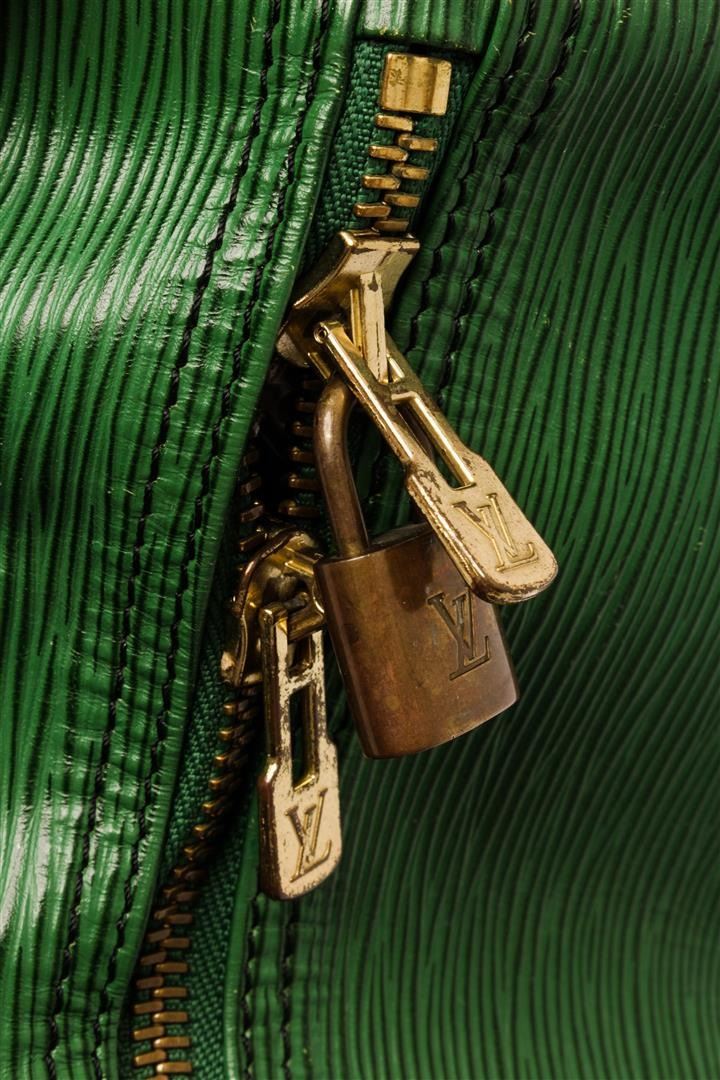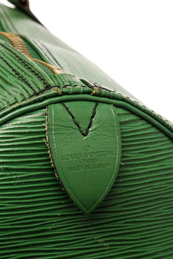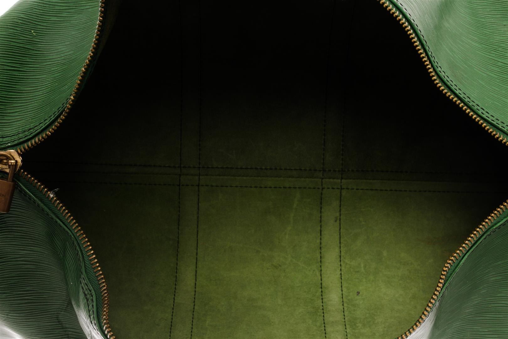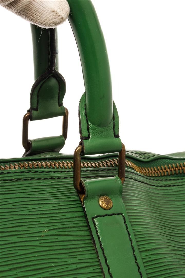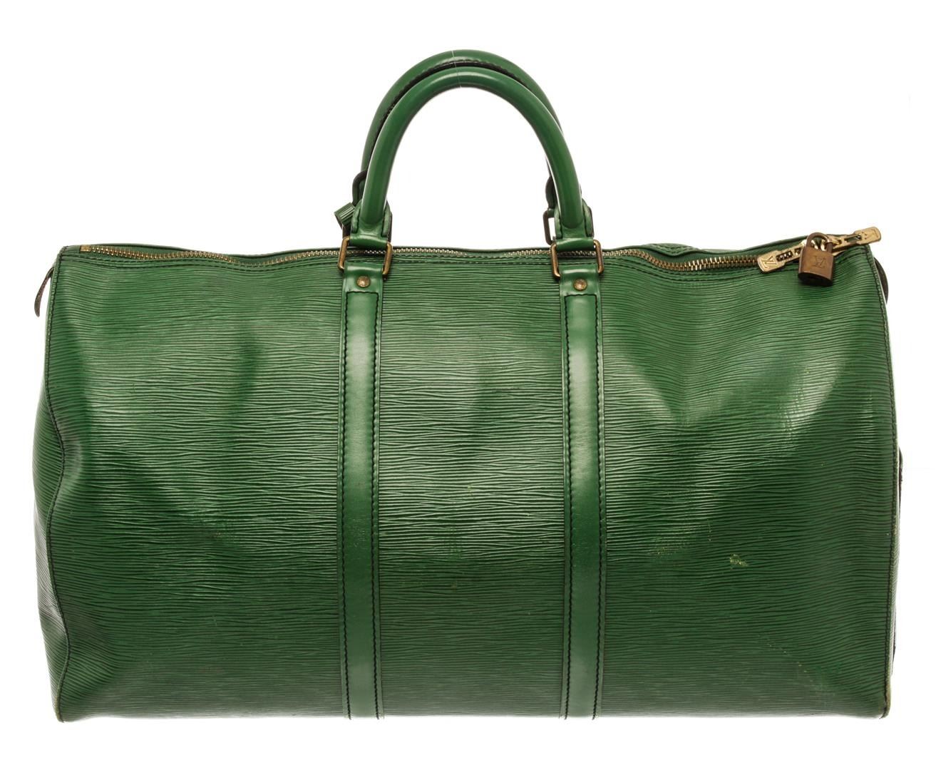 Louis Vuitton Keepall 50 Boston Bag. Brand: Louis Vuitton, Style: Keepall 50, Type: Boston Bag, Exterior color: Green Epi, Exterior material: Leather, Interior color: Green, Interior material: Suede, Length: 19.7, Width: 8.7, Height: 11.4. Item is sold AS