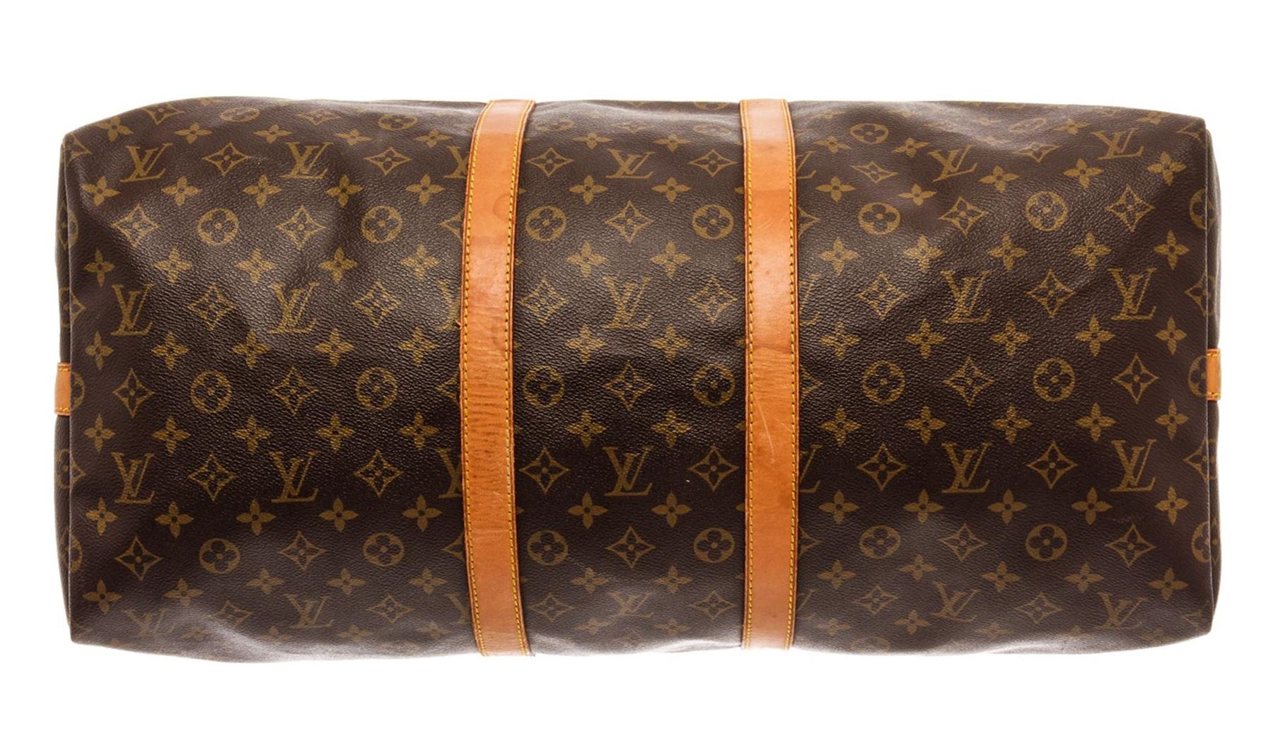 Louis Vuitton Keepall 55 Bandouliere Travel Bag. Brand: Louis Vuitton, Style: Keepall 55 Bandouliere, Type: Travel Bag, Exterior color: Monogram, Exterior material: Coated Canvas, Interior color: Brown, Interior material: Canvas, Length: 22, Width: 12, He