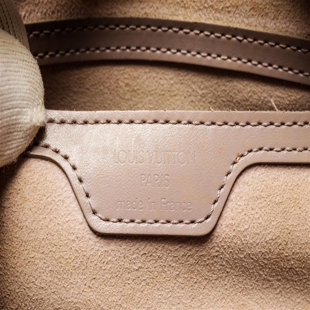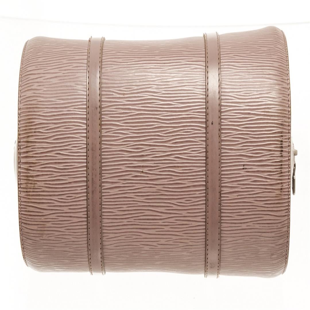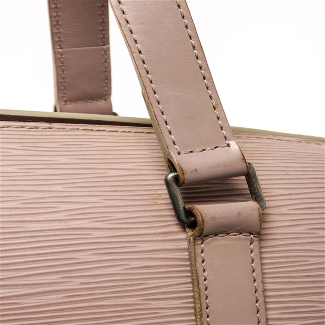 One Louis Vuitton Lilac Epi Soufflot Bag. Item is sold AS-IS. All available information is listed in the description and shown in the photo. Louis Vuitton lilac epi leather Soufflot bag with beige suede lining, smooth lilac leather straps, silver-toned hardware, zip closure, and one interior slip pocket. Bottom of bag is marked as shown in pictuers. Height: 5.91" Width: 12.2" Depth: 5.51", Handle Drop: 5.91" / 15 x 31 x 14 Cm