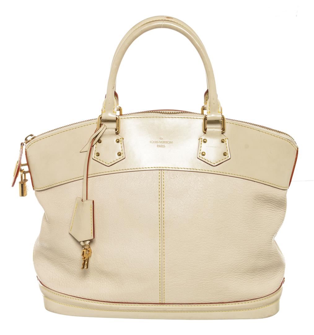 Louis Vuitton Lockit. All available information is listed in the description and shown in the photos. Louis Vuitton Lockit White Suhali Leather. Features gold hardware, white leather handles, red leather lining, white canvas interior, and a gold zipper closure.