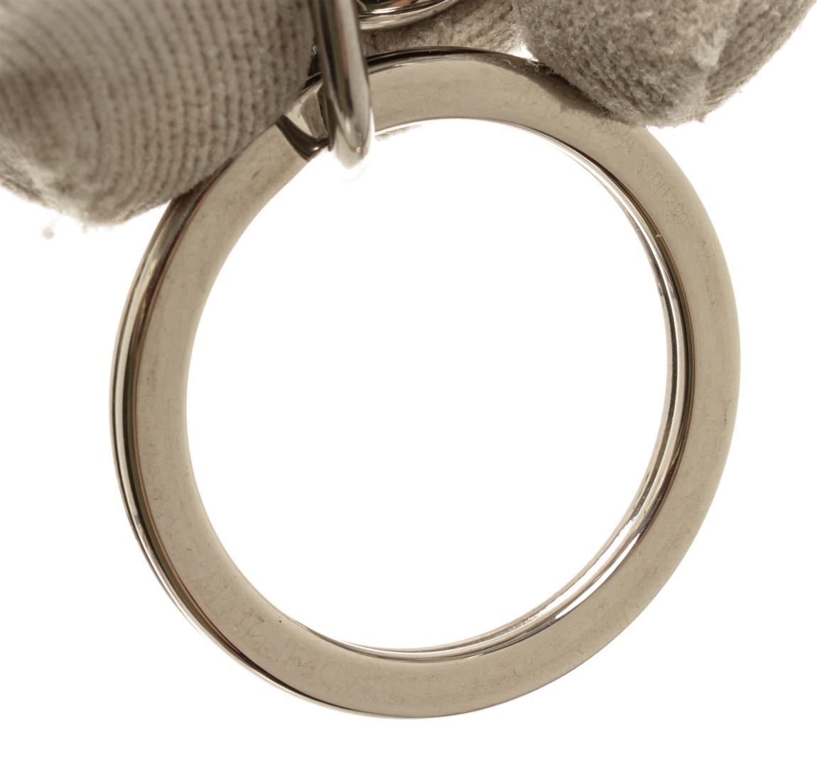 One Louis Vuitton Metal Circle Cut Key Holder. Item is sold AS-IS. All available information is listed in the description and shown in the photo. Louis Vuitton Metal Circle Cut Key Holder with plated black matte leather around the edge, embossed signature engraved on the snap hook and the ring, with silver-tone hardware.
