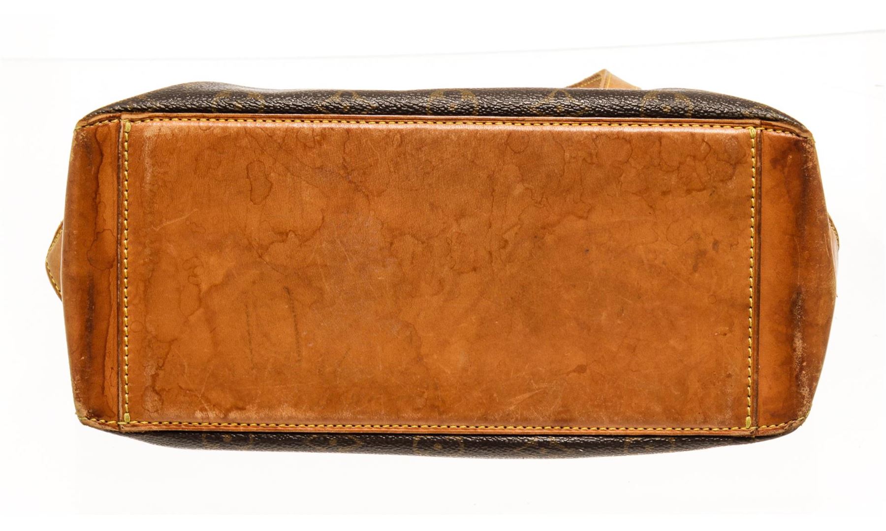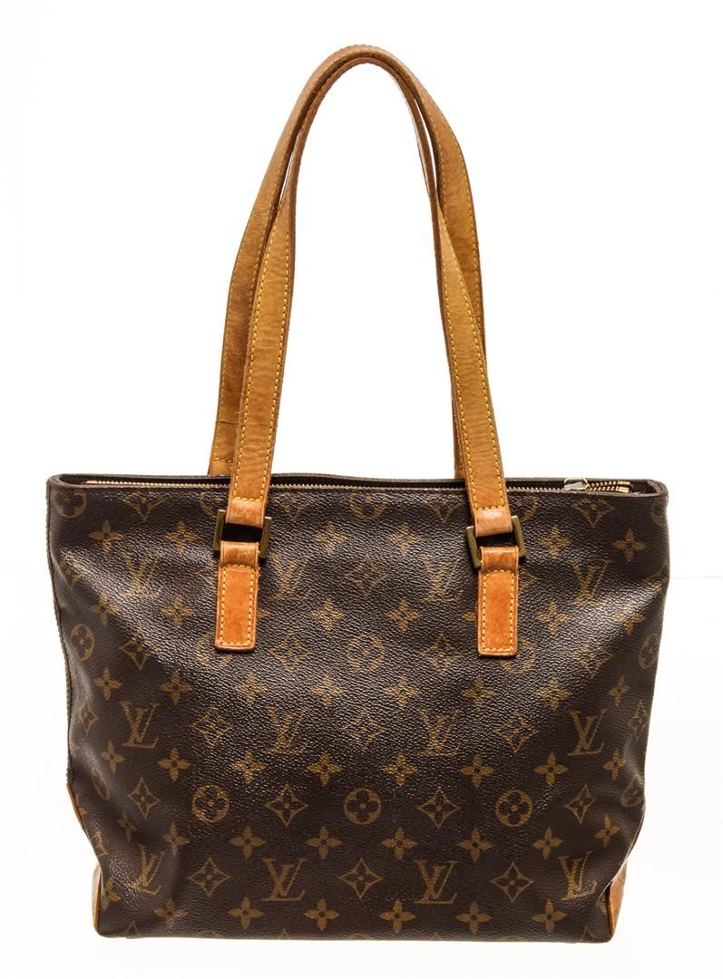 One Louis Vuitton Monogram Cabas Piano Handbag. Item is sold AS-IS. All available information is listed in the description and shown in the photo. Louis Vuitton Monogram Cabas Piano handbag with brown coated canvas exterior, brown fabric lining, contrasting vachetta leather top handles and bottom, gold-tone hardware, zipper closure, and one main compartment with one zip pocket.