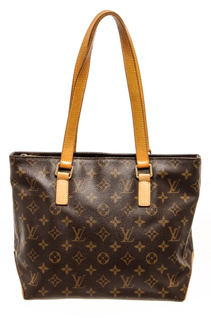 One Louis Vuitton Monogram Cabas Piano. Item is sold AS-IS. All available information is listed in the description and shown in the photo. Louis Vuitton Monogram Cabas Piano with vachetta top handle, zip closure, one slip interior pocket, brown fabric lining, gold-tone hardware.
