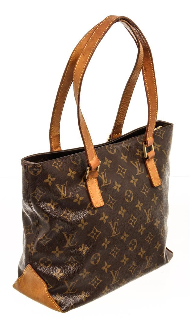 One Louis Vuitton Monogram Cabas Piano. Item is sold AS-IS. All available information is listed in the description and shown in the photo. Louis Vuitton Monogram Cabas Piano with coated canvas exterior, brown fabric lining, contrasting vachetta leather straps and trims, gold-tone hardware, zipper closure, and one main compartment with one zip pocket and one slip pocket.