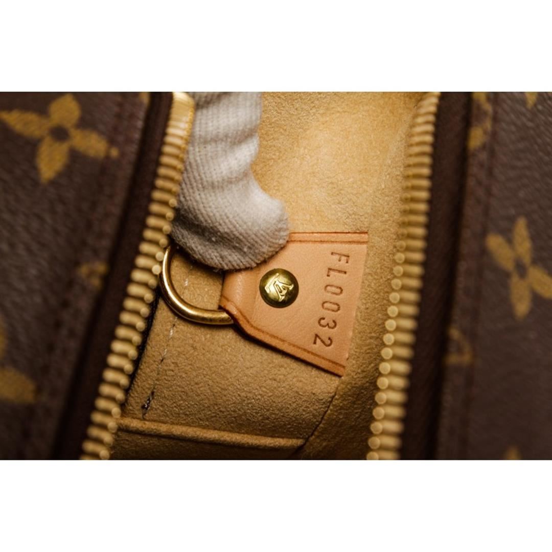 Brown and tan monogram coated canvas Louis Vuitton Cite GM with brass hardware, tan vachetta trim, single zip pocket at exterior, dual flat shoulder straps, beige Alcantara lining, three interior pockets; one with zip closure and two-way zip closure at to
