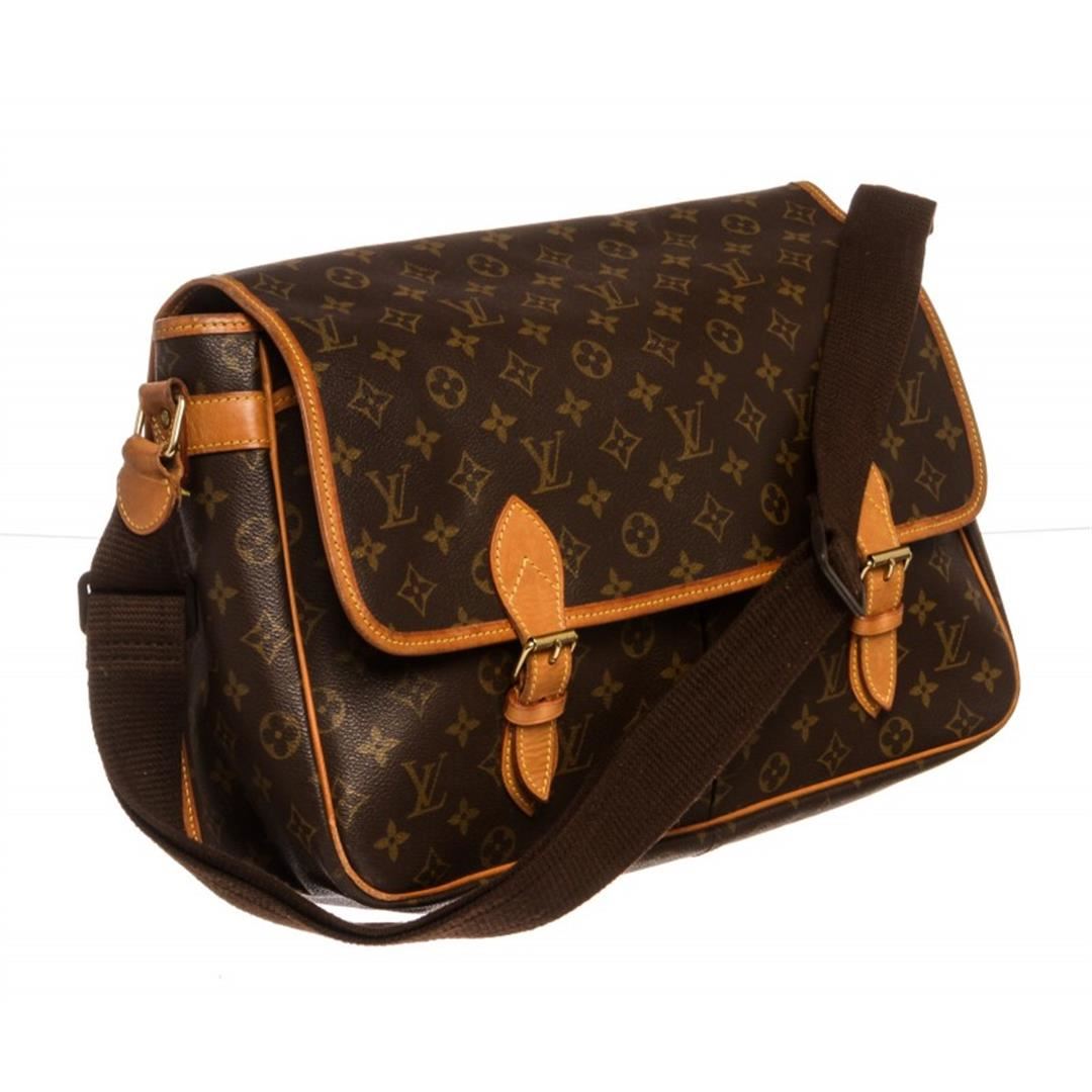 One Louis Vuitton Monogram Canvas Leather Gibeciere GM Messenger Bag. Overall flap with double buckle closure. Two frontip pockets under flap andip pocket on exterior rear. Interior is canvas fabric lined and contains side zipper pocket.