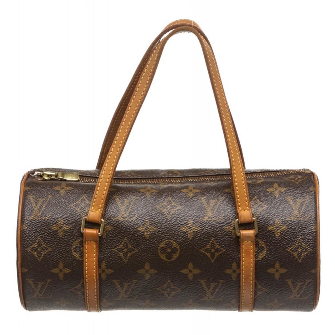 One Louis Vuitton Monogram Canvas Leather Papilon 26 cm Shoudler Bag. Brown and tan monogram coated canvas Louis Vuitton Papillon with brass hardware, dual flat top handles, tan vachetta leather trim throughout, brown coated lining and zip closure at top.