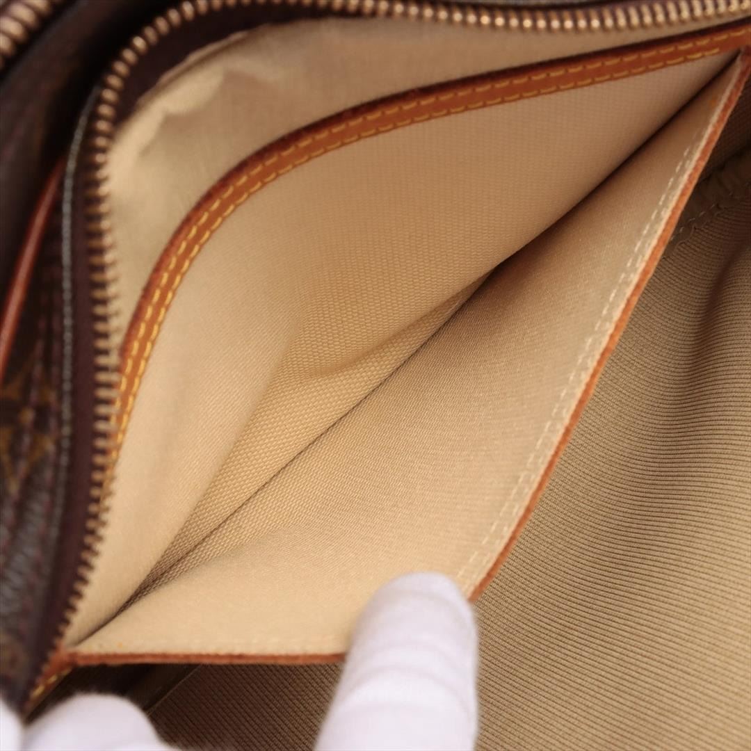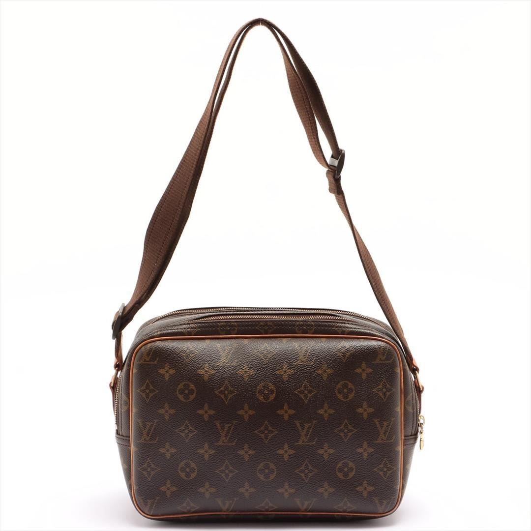 One Louis Vuitton Monogram Canvas Leather Reporter PM Bag. Item is sold AS-IS. All available information is listed in the description and shown in the photo. Brown and tan monogram coated canvas Louis Vuitton Reporter PM with brass hardware, tan vachetta leather accents, adjustable flat shoulder strap, single exterior pocket, beige coated canvas interior, dual interior compartments, single pocket at interior wall and dual zip closures at top. 10"x4"x8"xStrap Drop:21"/25.4cmx10.1cmx20.3cmxStrap Drop:53.3cm