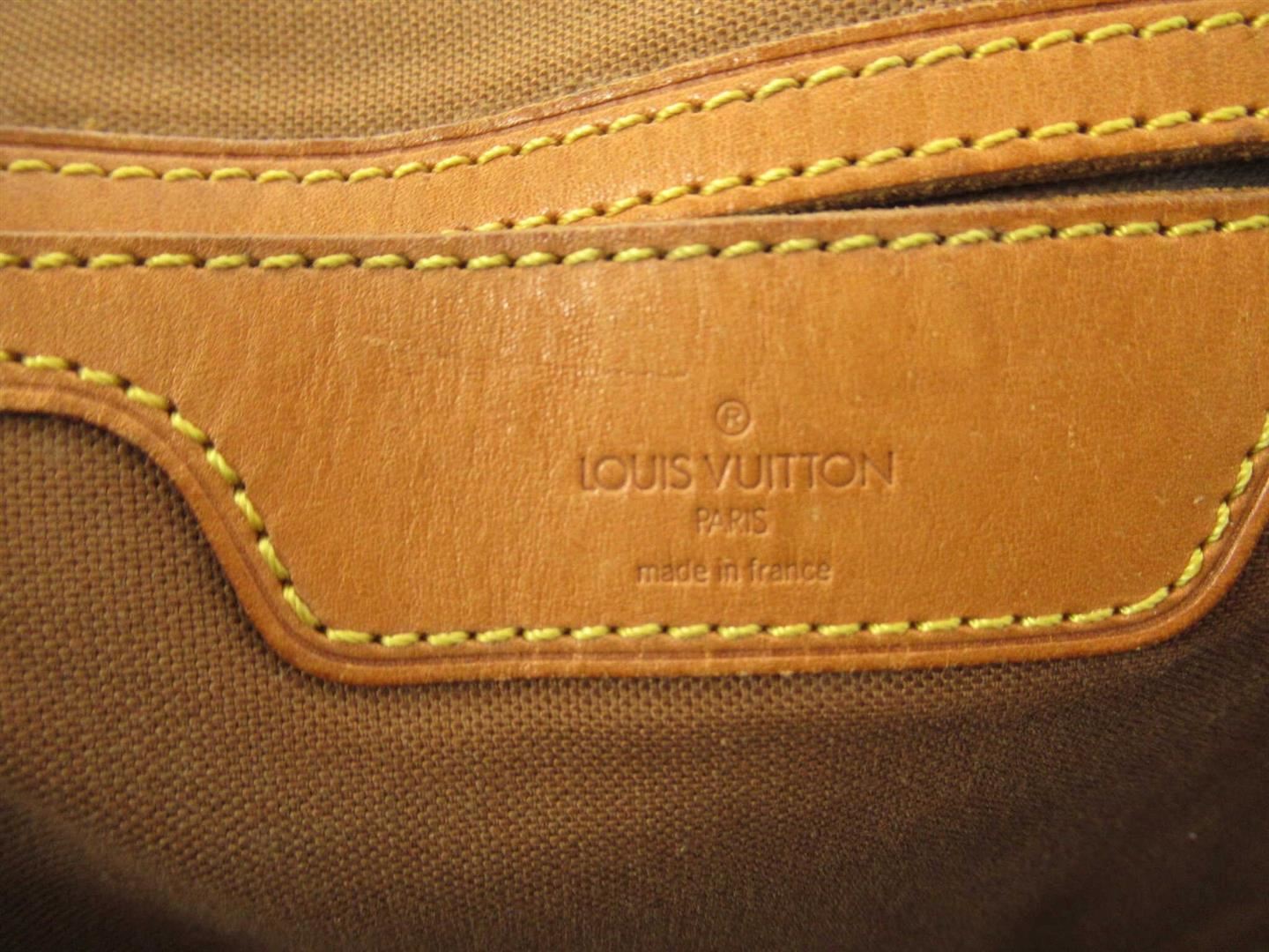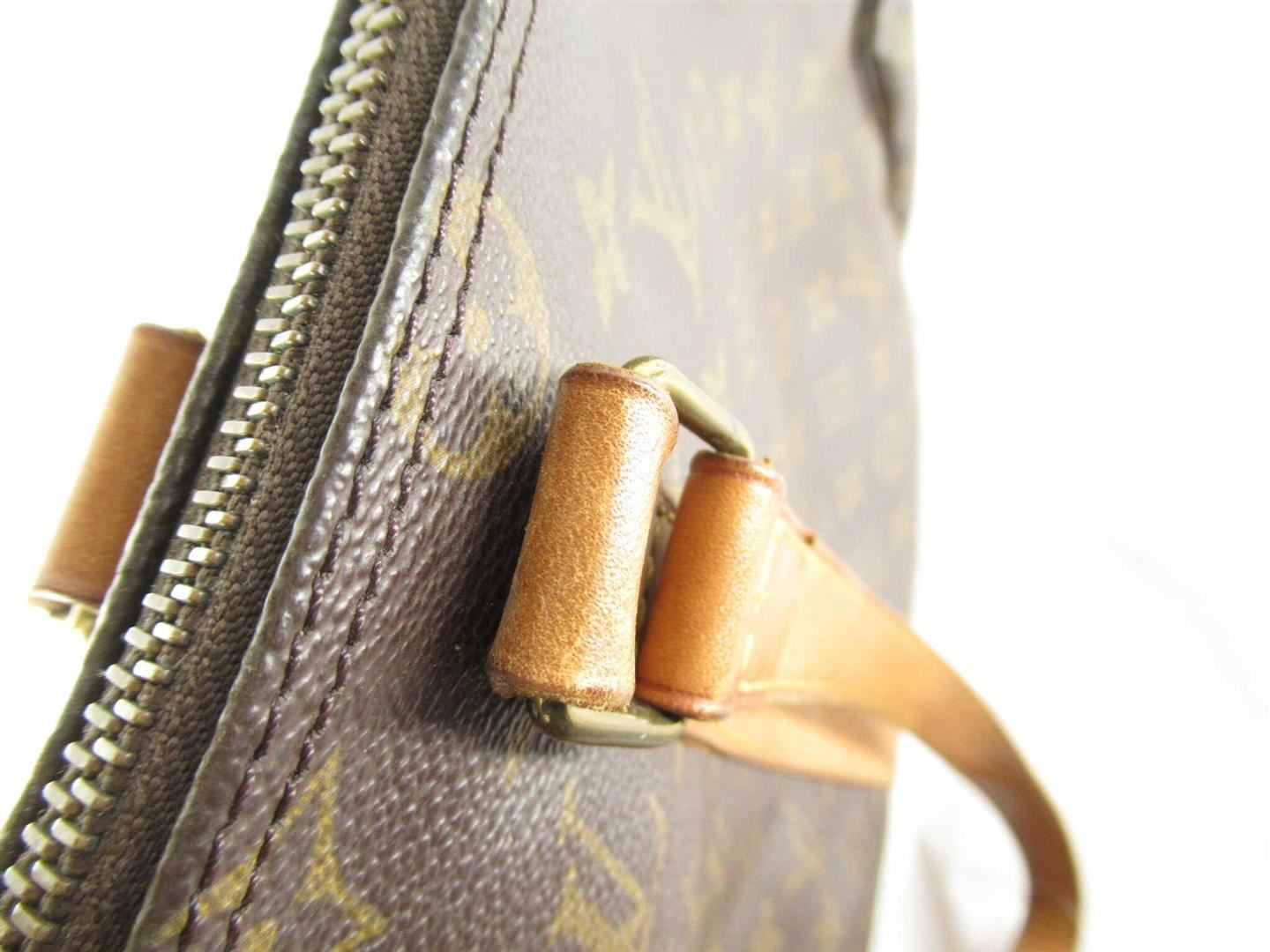 Brown and tan monogram Louis Vuitton Monogram Sac Flanerie 50 with brass hardware, tan vachetta leather trim, dual flat shoulder straps, brown canvas lining featuring single slit pocket and zip closure at top.