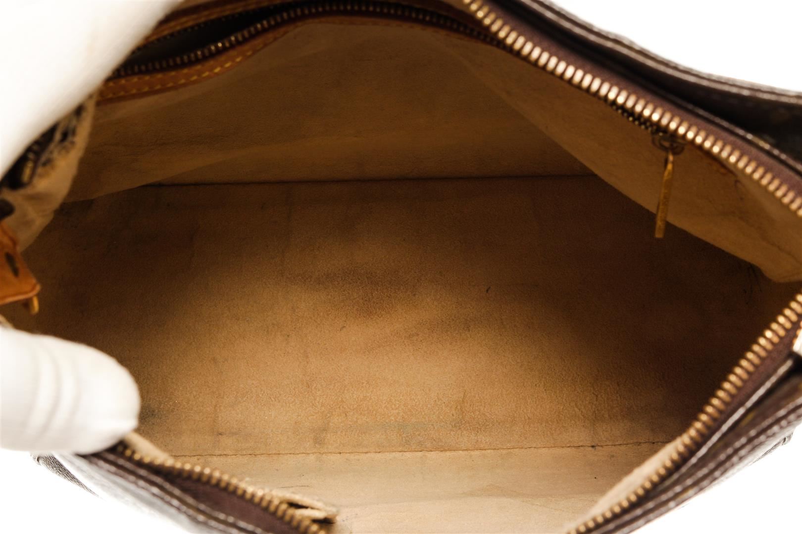 One Louis Vuitton Monogram Looping GM. Item is sold AS-IS. All available information is listed in the description and shown in the photo. Louis Vuitton Monogram Looping GM with vachetta top handle, zipper closure, one zip interior pocket, gold-tone hardware, and brown fabric lining.