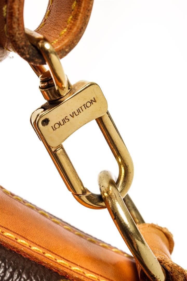 One Louis Vuitton Monogram Romeo Gigli Shoulder Bag. Item is sold AS-IS. All available information is listed in the description and shown in the photo. Louis Vuitton Monogram Romeo Gigli shoulder bag with brown coated canvas exterior, brown fabric lining, contrasting vachetta leather adjustable straps and trims, gold-tone hardware, drawstring closure, and one main compartment.