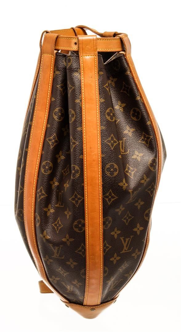 One Louis Vuitton Monogram Romeo Gigli Shoulder Bag. Item is sold AS-IS. All available information is listed in the description and shown in the photo. Louis Vuitton Monogram Romeo Gigli shoulder bag with brown coated canvas exterior, brown fabric lining, contrasting vachetta leather adjustable straps and trims, gold-tone hardware, drawstring closure, and one main compartment.