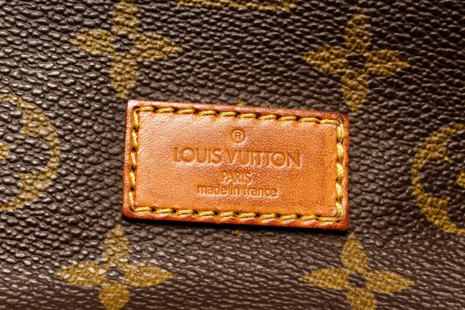 One Louis Vuitton Monogram Saumur 43 Shoulder Bag. Item is sold AS-IS. All available information is listed in the description and shown in the photo. Louis Vuitton Monogram Saumur 43 shoulder bag with coated canvas exterior, brown fabric lining, contrasting vachetta leather trims and adjustable strap; gold-tone hardware, flap and buckle closure; and two main compartments, one on each side.