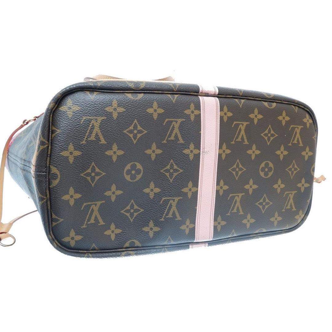 Brown and tan limited edition monogram summer trunks coated canvas Louis Vuitton Neverfull MM tote bag with double flat leather handles and shoulder straps, open top with clasped ban middle hook, Louis Vuitton canvas striped textile lining interior comes