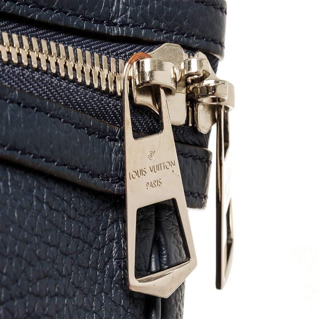 One Louis Vuitton Navy Leather Armand Messenger bag. Item is sold AS-IS. All available information is listed in the description and shown in the photo. Louis Vuitton navy leather Armand messenger bag with leather exterior, orange suede lining, silver-tone hardware, zipper closure, adjustable fabric strap, one exterior zip pocket, and one main compartment with a slip pocket. Height: 12.5" Width: 14" Depth: 5", Handle Drop: / 31.75 x 35.56 x 12.7 Cm