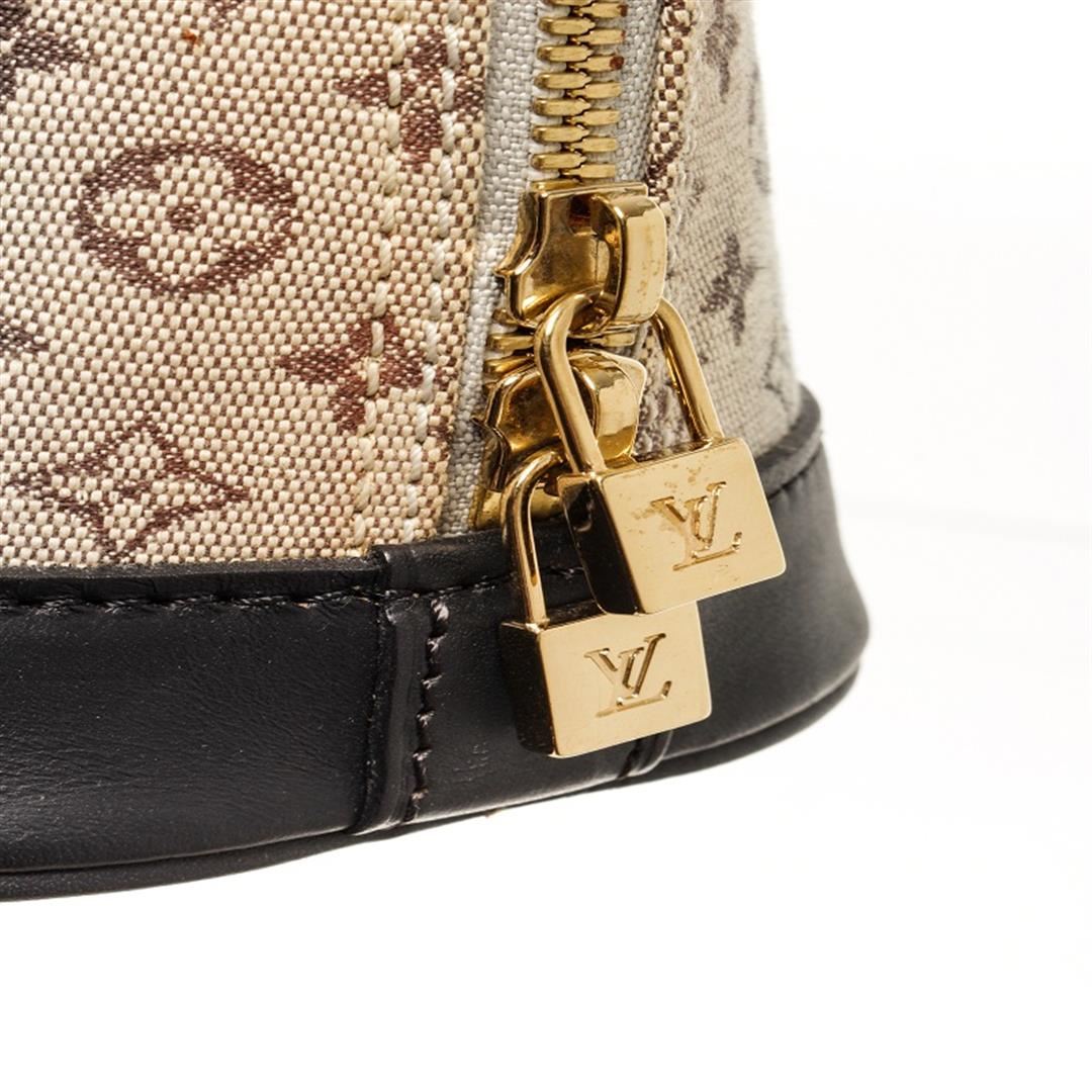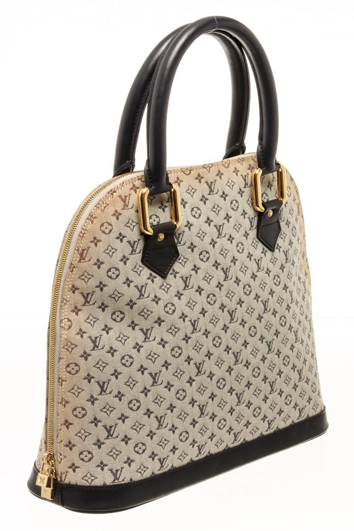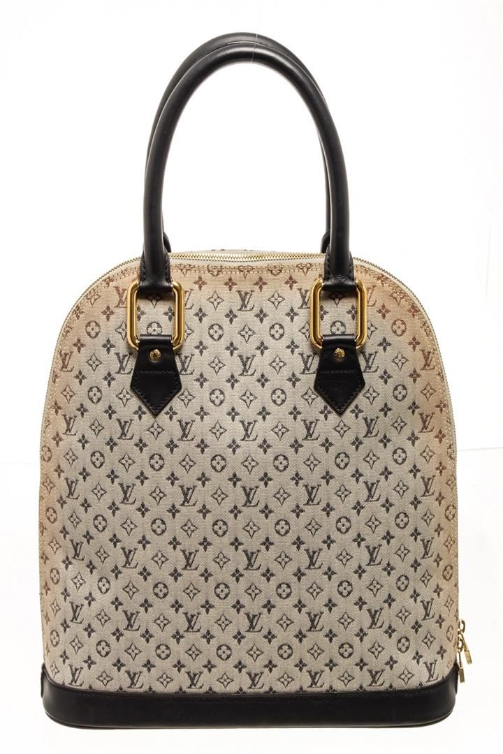 One Louis Vuitton Neutrals Canvas Alma Haut Top Handle Bag. Item is sold AS-IS. All available information is listed in the description and shown in the photo. Louis Vuitton neutrals canvas Alma Haut top handle bag with monogram canvas exterior, beige fabric lining, black leather trims and top handles, gold-tone hardware, zipper closure, and one main compartment with one zip pocket. Canvas is fading, lining has some stains as shown in pictures. Height: 13.25" Width: 12.75" Depth: 4.25", Handle Drop: 5.75" / 33.65 x 32.38 x 10.79 Cm