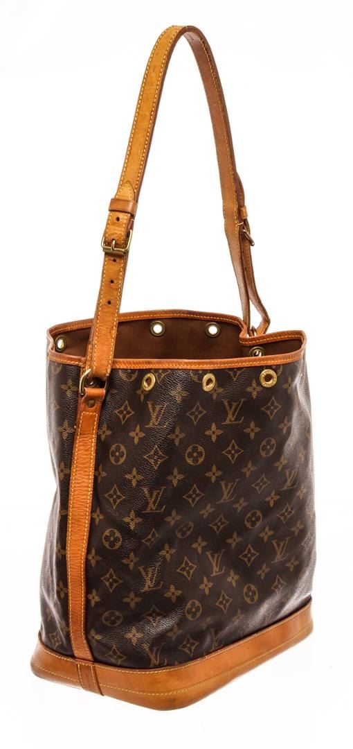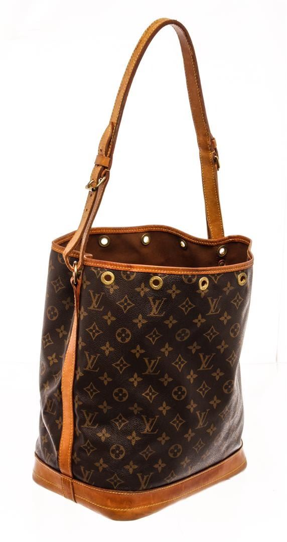 Louis Vuitton Noe GM Bucket Bag. Brand: Louis Vuitton, Style: Noe GM, Type: Bucket Bag, Exterior color: Brown Monogram, Exterior material: Coated Canvas, Interior color: Brown, Interior material: Canvas, Length: 7, Width: 10, Height: 13. Item is sold AS-I