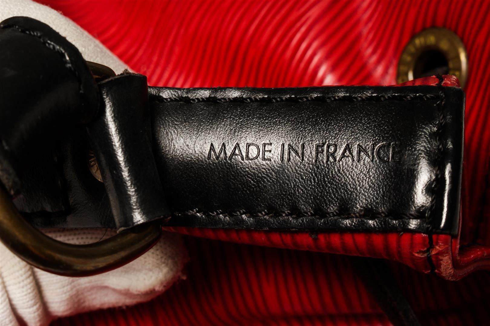 Louis Vuitton Noe Shoulder Bag Shoulder Bag. Brand: Louis Vuitton, Style: Noe Shoulder Bag, Type: Shoulder Bag, Exterior color: Red Black, Exterior material: Epi Leather, Interior color: Black, Interior material: Alcantara, Length: 10", Width: 7.5", Heigh