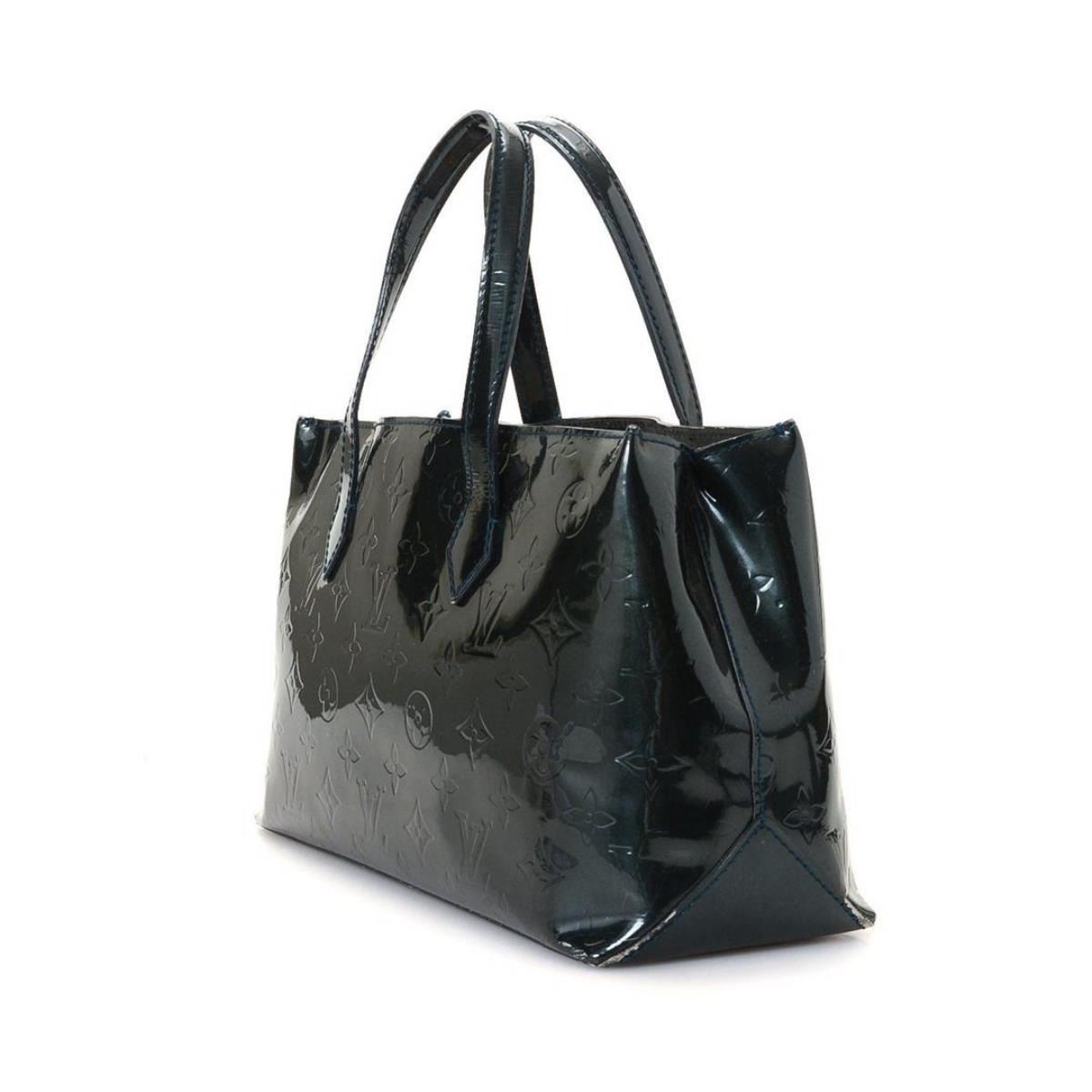 Louis Vuitton Nuit Monogram Wilshire PM Shoulder Bag with gold-tone hardware, dual flat top handles, logo placard at front face, tonal canvas lining, single zip pocket at interior wall and magnetic closure at top. Measurements: Length: 4.5 in / 11 cm Width: 12 in / 30 cm 7 in / 18 cm Condition: Pre-Owned Good overall, please see photographs for detail.