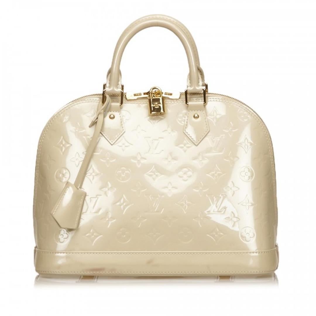 Overall double zipper handbag. Interior is fabric lined and contains sideip pocket.