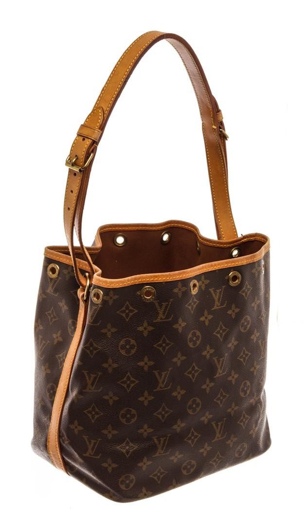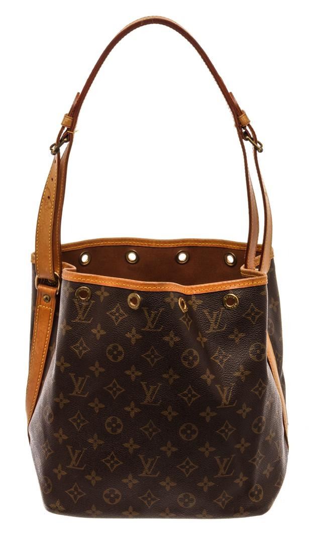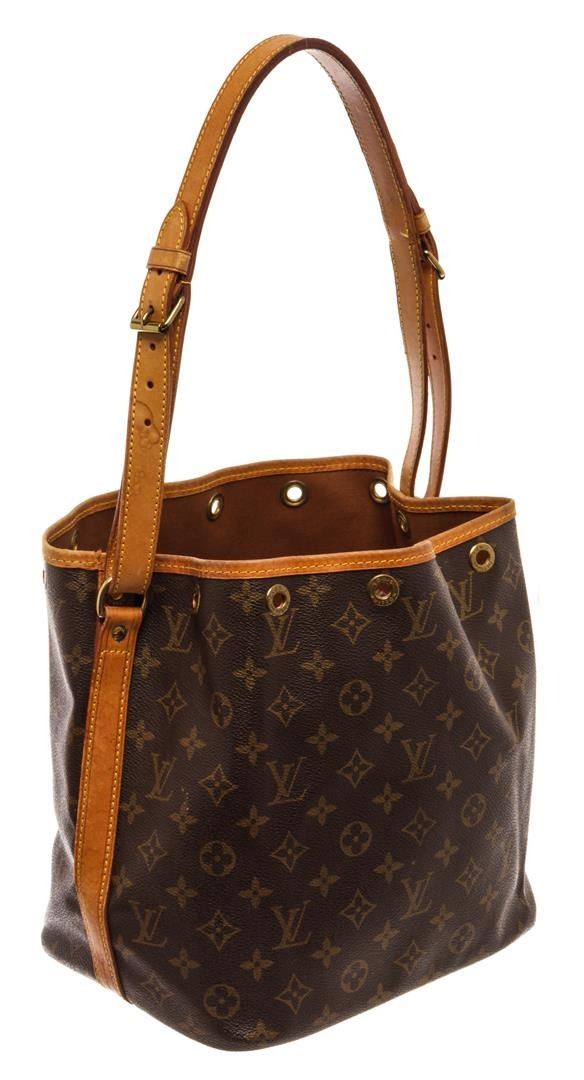 Louis Vuitton Petit Noe Bucket Bag Brown Coated Canvas. Brand: Louis Vuitton, Style: Petit Noe, Type: Bucket Bag, Exterior Color: Brown, Exterior Material: Coated Canvas, Exterior Pockets: None, Interior Color: Brown, Interior Material: Brown, Interior Pockets: Canvas, Closure: Drawstring Closure, Handle/Strap Type: Adjustable Flat Handle, Length: 1N/A, Width: 7.5, Height: 1N/A.5, Strap Drop: 9. Condition: Bottom has wear. Additional Information: Missing Drawstring. Item is sold AS-IS and all information pertaining to this lot is available in the photos or this description.
