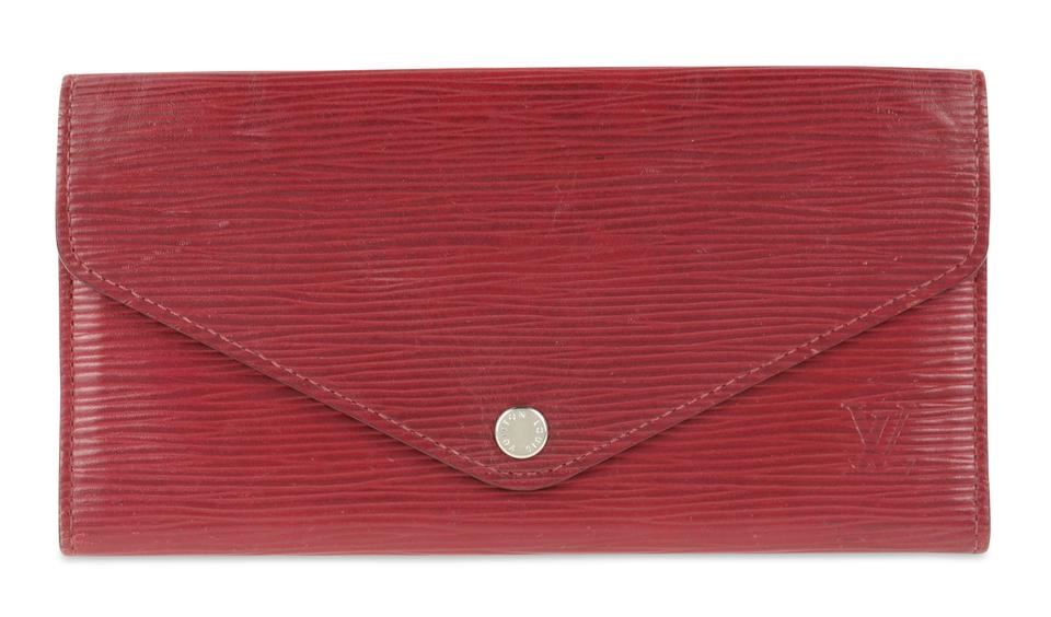 Louis Vuitton Josephine Epi Wallet Front button snap closure Silver-tone hardware Epi leather 4 card slots 3 large bill slip pockets 1 detached coin zipper pocket Made in Spain