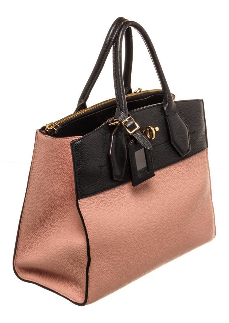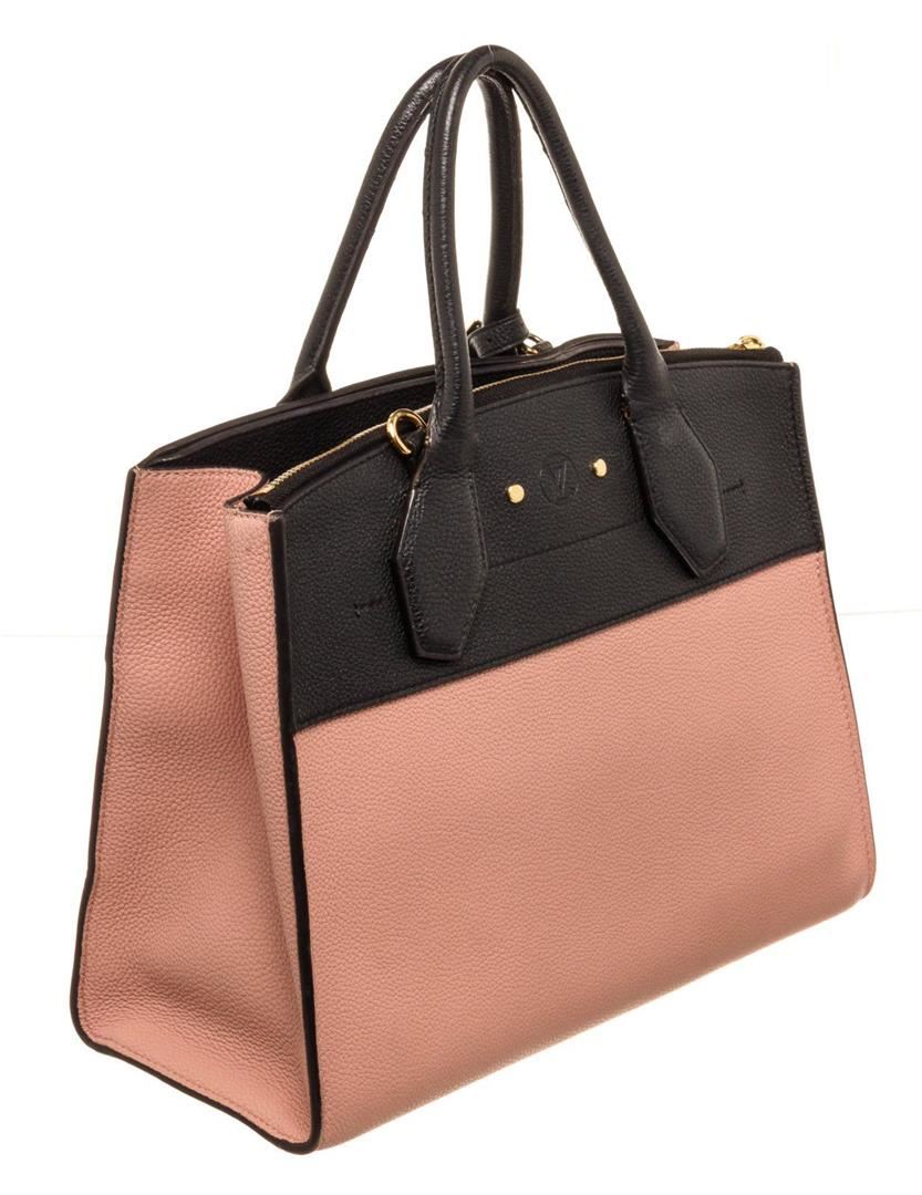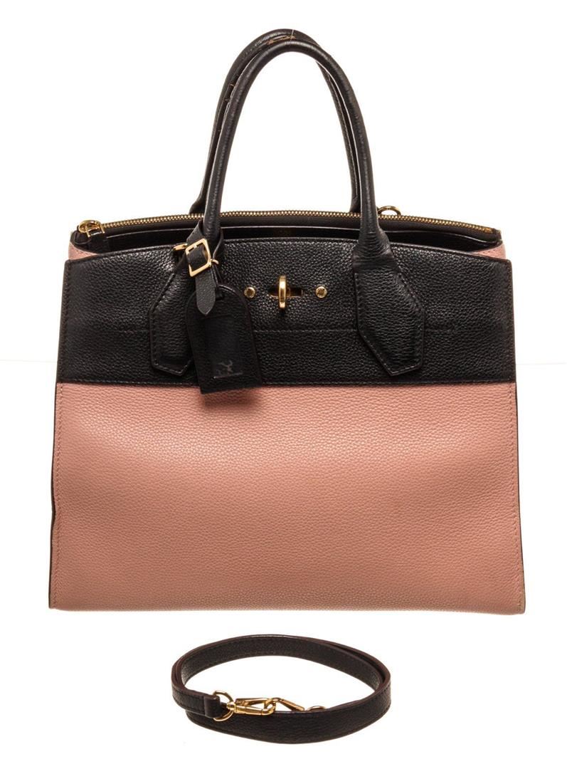 Louis Vuitton Pink Leather City Steamer MM Shoulder Bag with Crafted our of monogram solar ray canvas, black cowhide leather trim, and black metal hardware, matte orange resin chain. Inner black canvas lining. From the Ss 2019 Virgil Abloh Louis Vuitton collection.