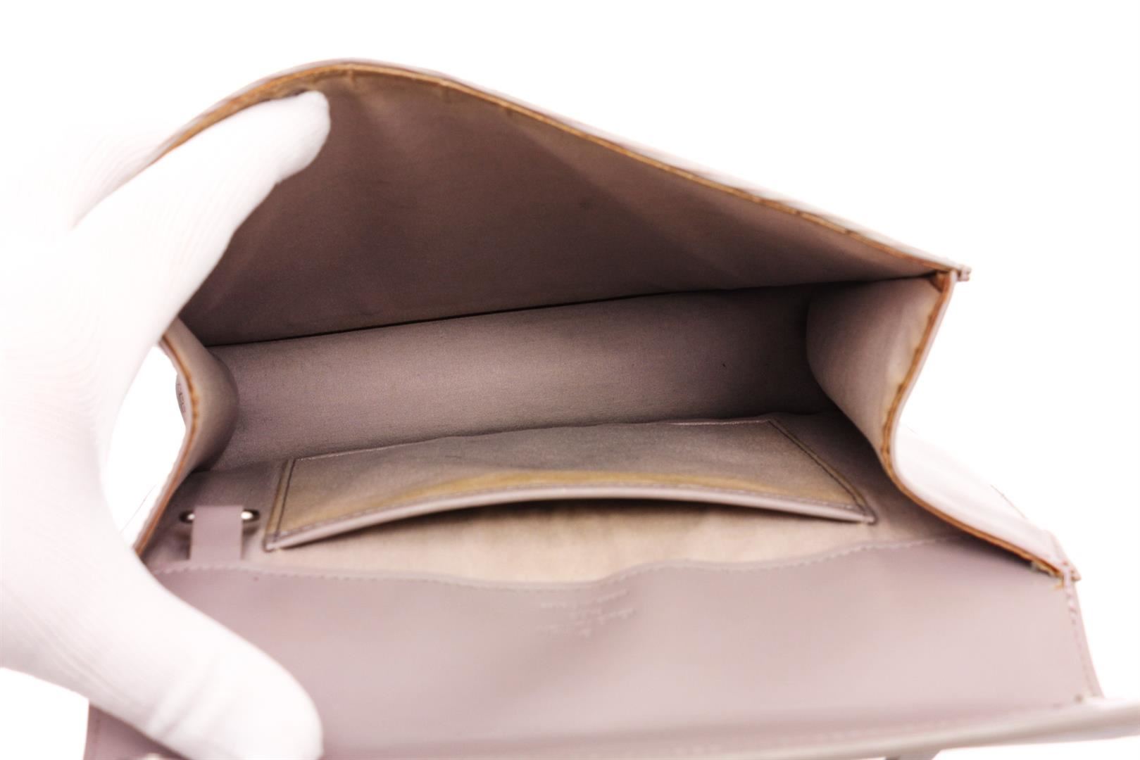 Purple Epi leather Louis Vuitton Ramatuelle bag with antiqued silver-tone hardware, debossed logo at front flap, single slit pocket at back, tonal woven lining, single slit pocket at interior wall and dual magnetic snap closure at front.