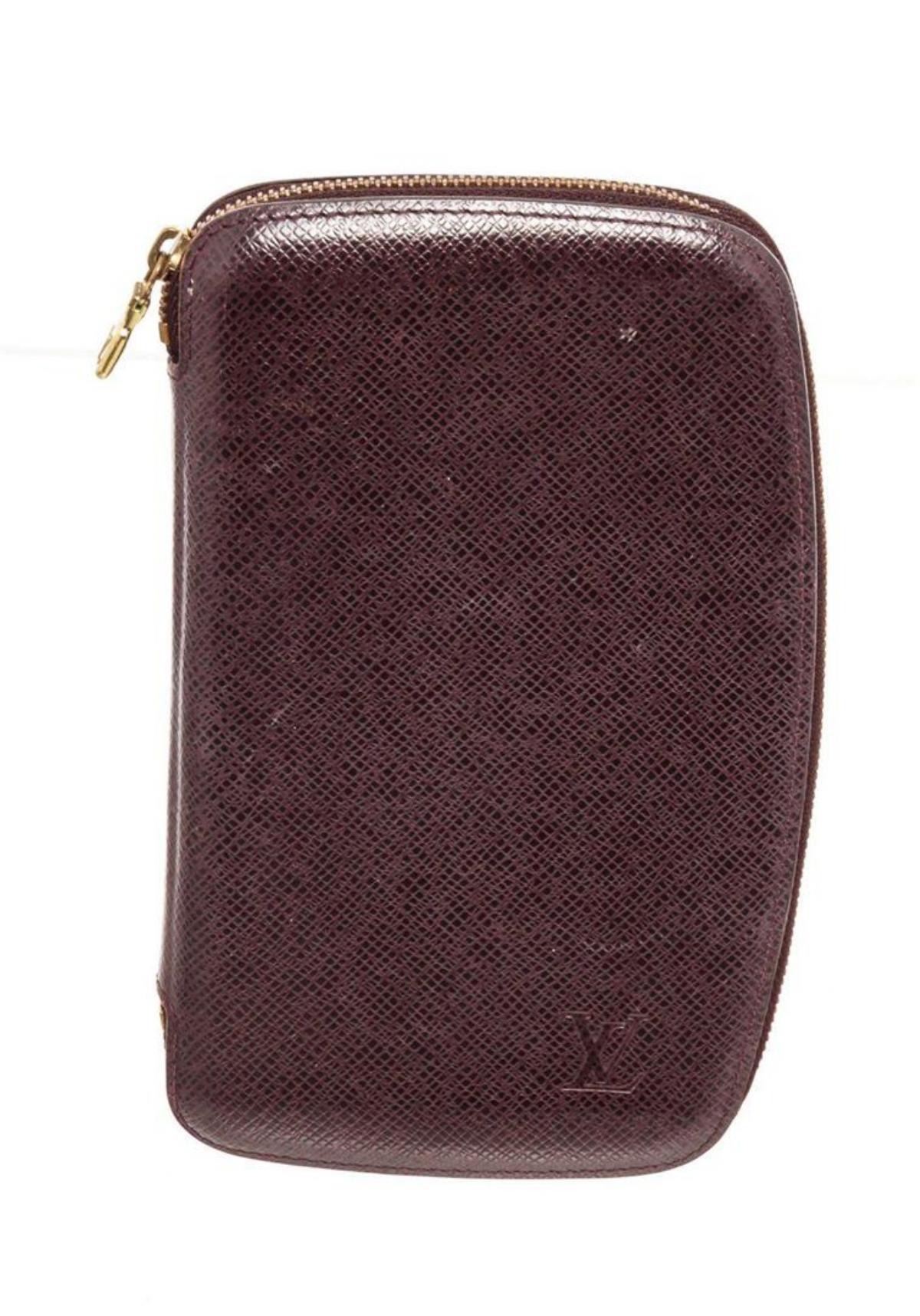 Louis Vuitton purple Taiga leather Ge´ode organizer wallet with gold-tone hardware, tonal leather lining, three bill compartments at interior walls, six card slots and zip-around closure. Measurements: Length: 7.25 in / 18 cm Width: 0.5 in / 1 cm 4 in / 10 cmCONDITION: Pre-Owned Good overall, please see photographs for detail.