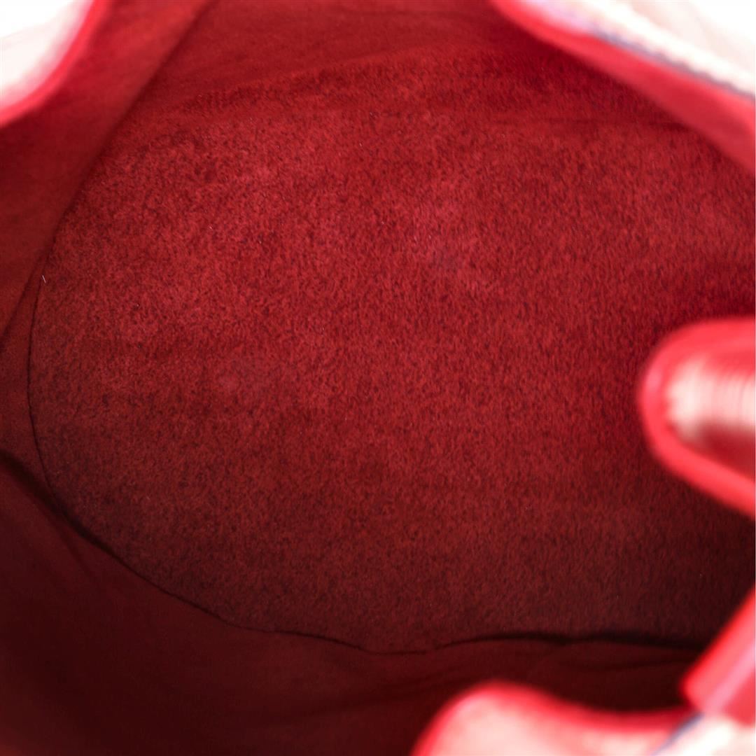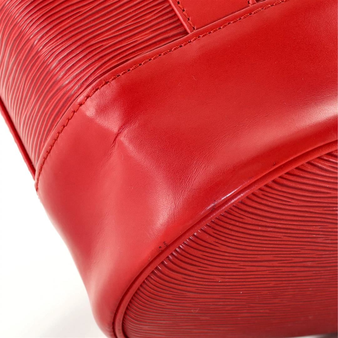 One Louis Vuitton Randonnee Backpack Epi Leather PM. Item is sold AS-IS. All available information is listed in the description and shown in the photo. Louis Vuitton Randonnee Backpack Epi Leather PM. Odor in interior. Creasing on exterior, minor wear and marks on opening and base trim. Fraying on strap wax edges, scratches and tarnish on hardware.