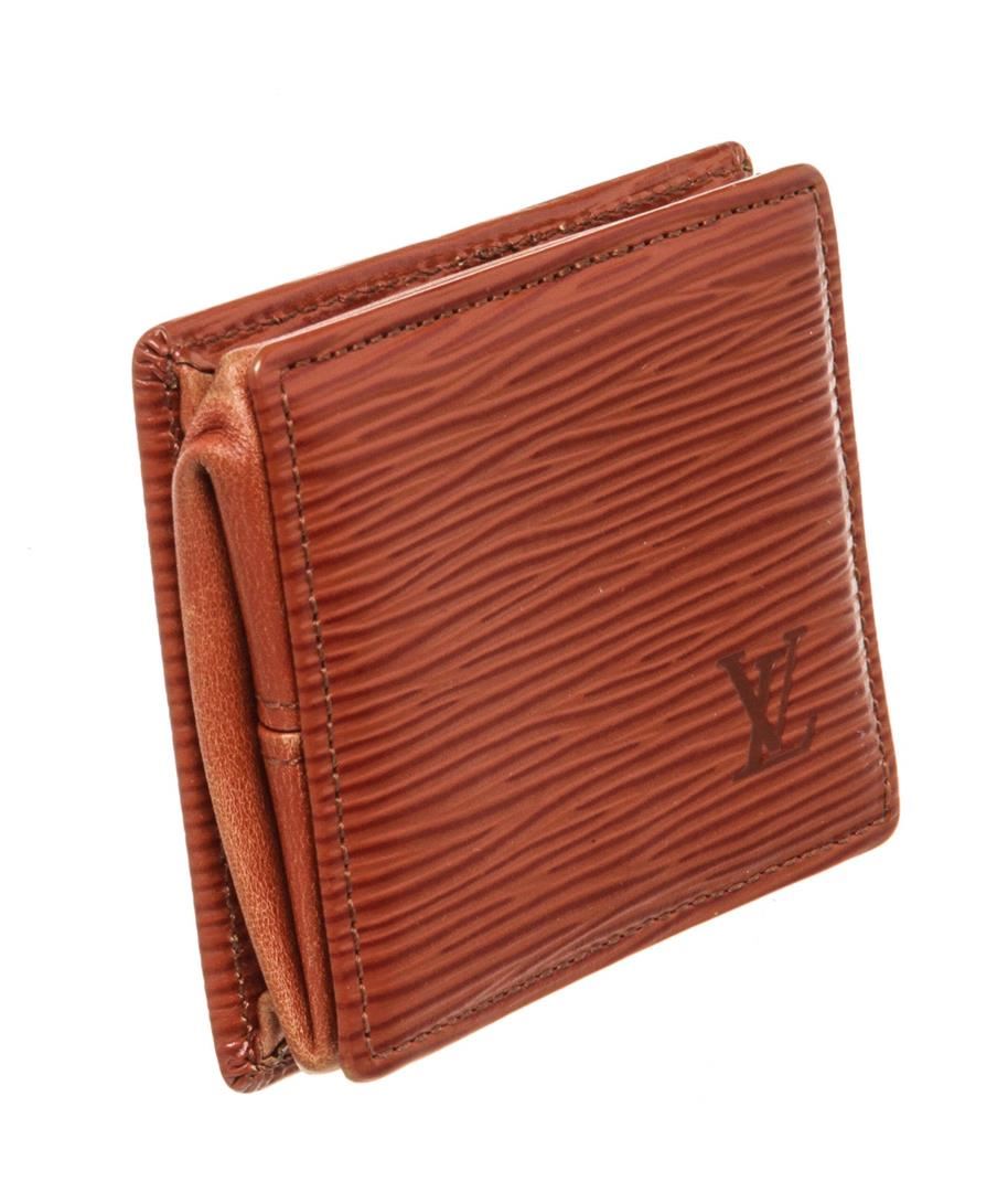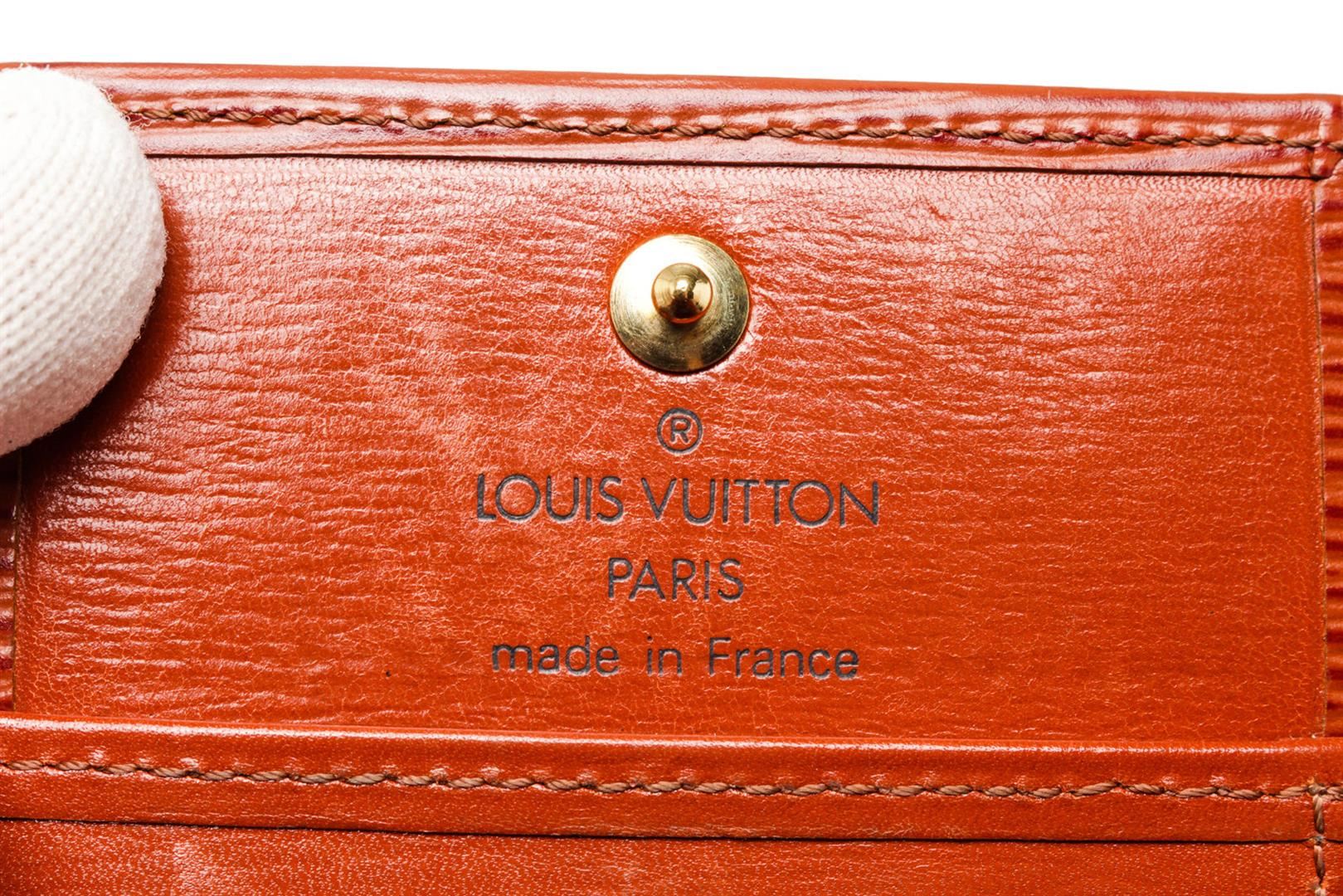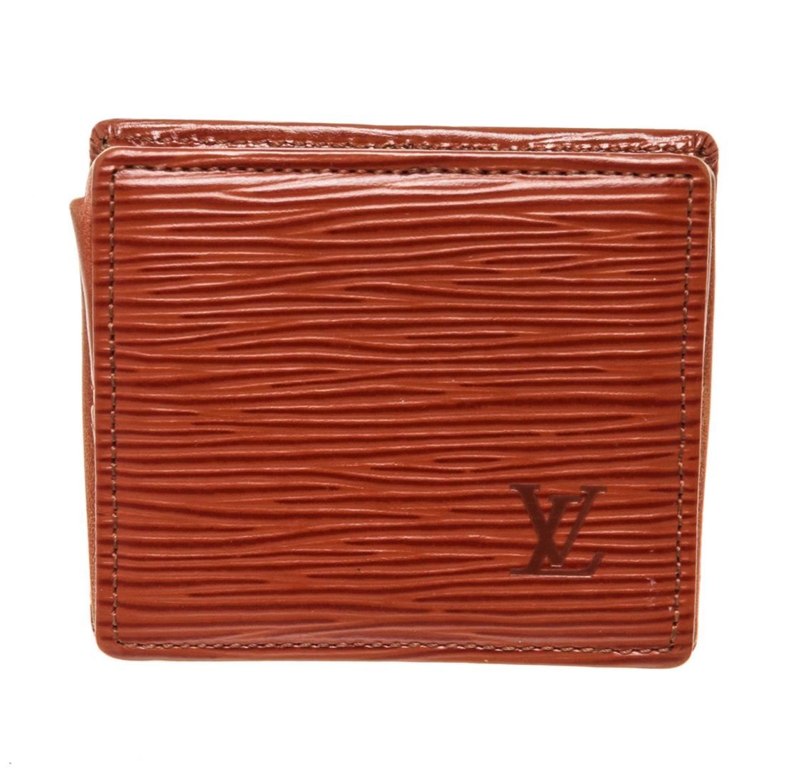 Louis Vuitton Red Epi Leather Boite Coin Wallet with epi leather, gold-tone hardware, interior slip pockets and snap closure.