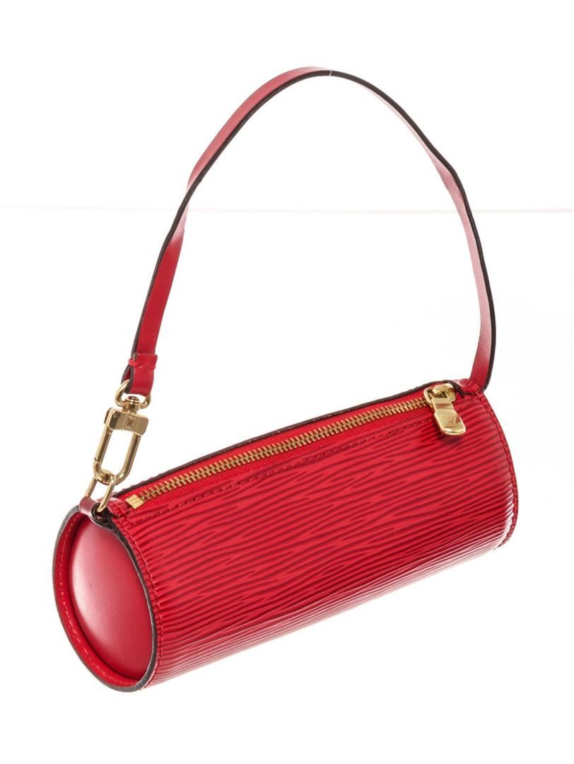 Louis Vuitton Red Epi Leather Mini Papillon Shoulder Bag with epi leather gold-tone hardware, trim tan vachetta leather and zipper closure.