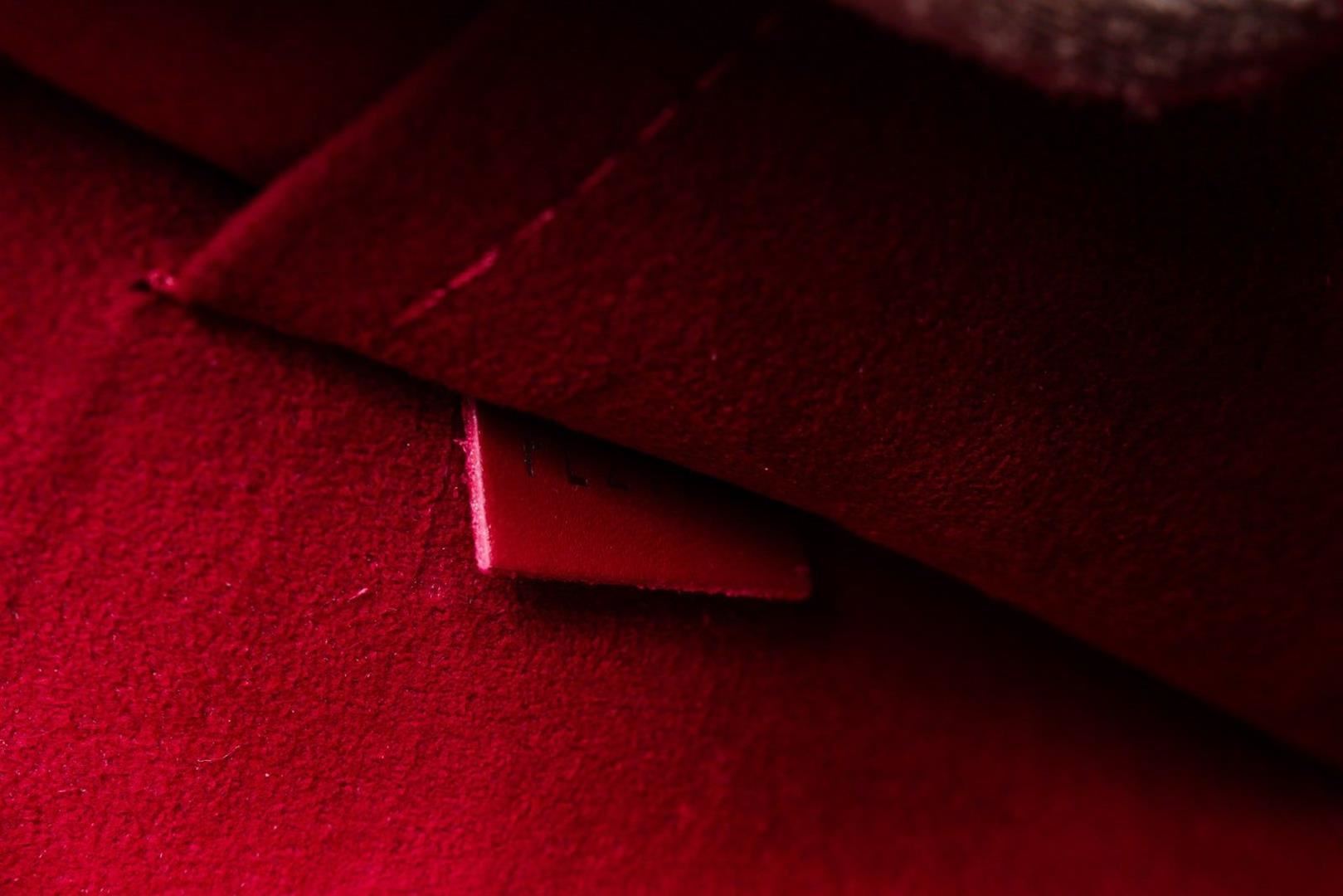 Louis Vuitton Red Epi Leather Neverfull Pouch Clutch with epi leather, gold tone hardware, trim tan vachetta leather, interior slip Pocket and zipper closure.