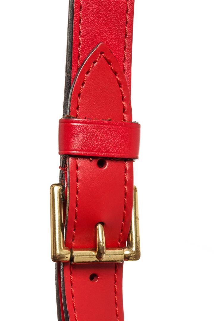 One Louis Vuitton Red Epi Leather Noe PM Bag. Item is sold AS-IS. All available information is listed in the description and shown in the photo. Louis Vuitton Red Epi Leather Petit Noe Bag with gold-tone hardware, red leather trim, red suede lining, single adjustable leather shoulder strap, and drawstring closure. .