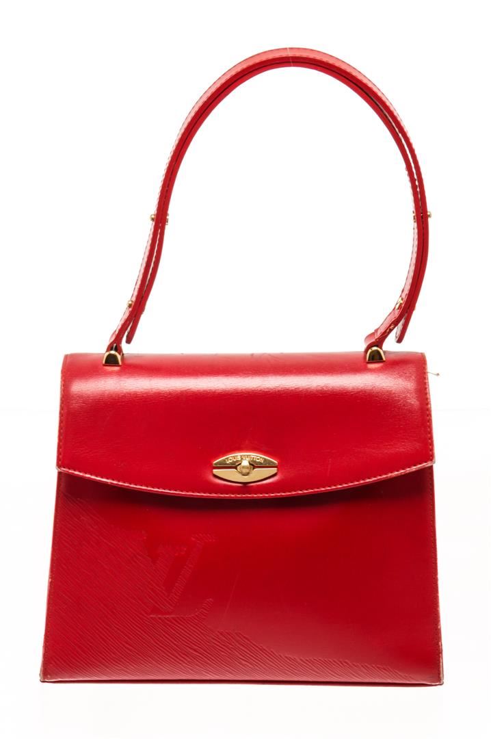 One Louis Vuitton Red Epi Leather Opera Sparta Shoulder Bag. Item is sold AS-IS. All available information is listed in the description and shown in the photo. Louis Vuitton Red Epi Leather Opera Sparta Shoulder Bag with top handle, gold tone hardware, red epi leather with logo on front, leather lining, interior zipper pocket, turn lock closure.