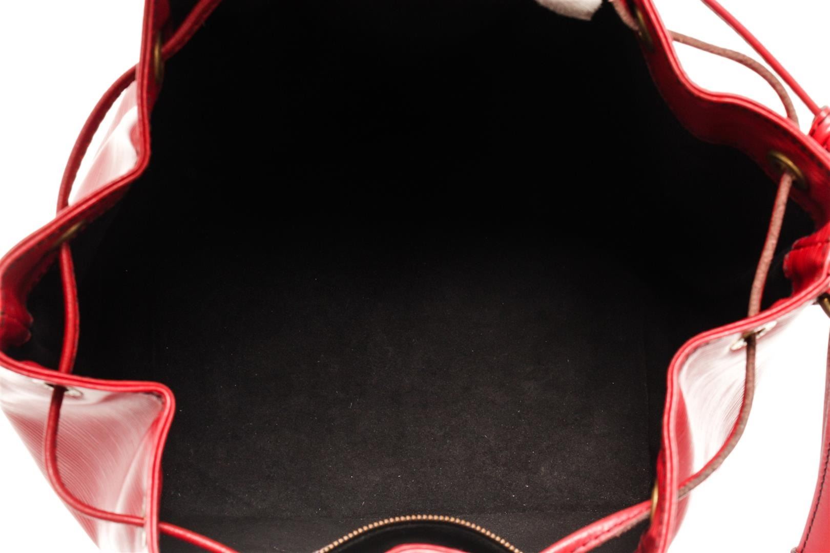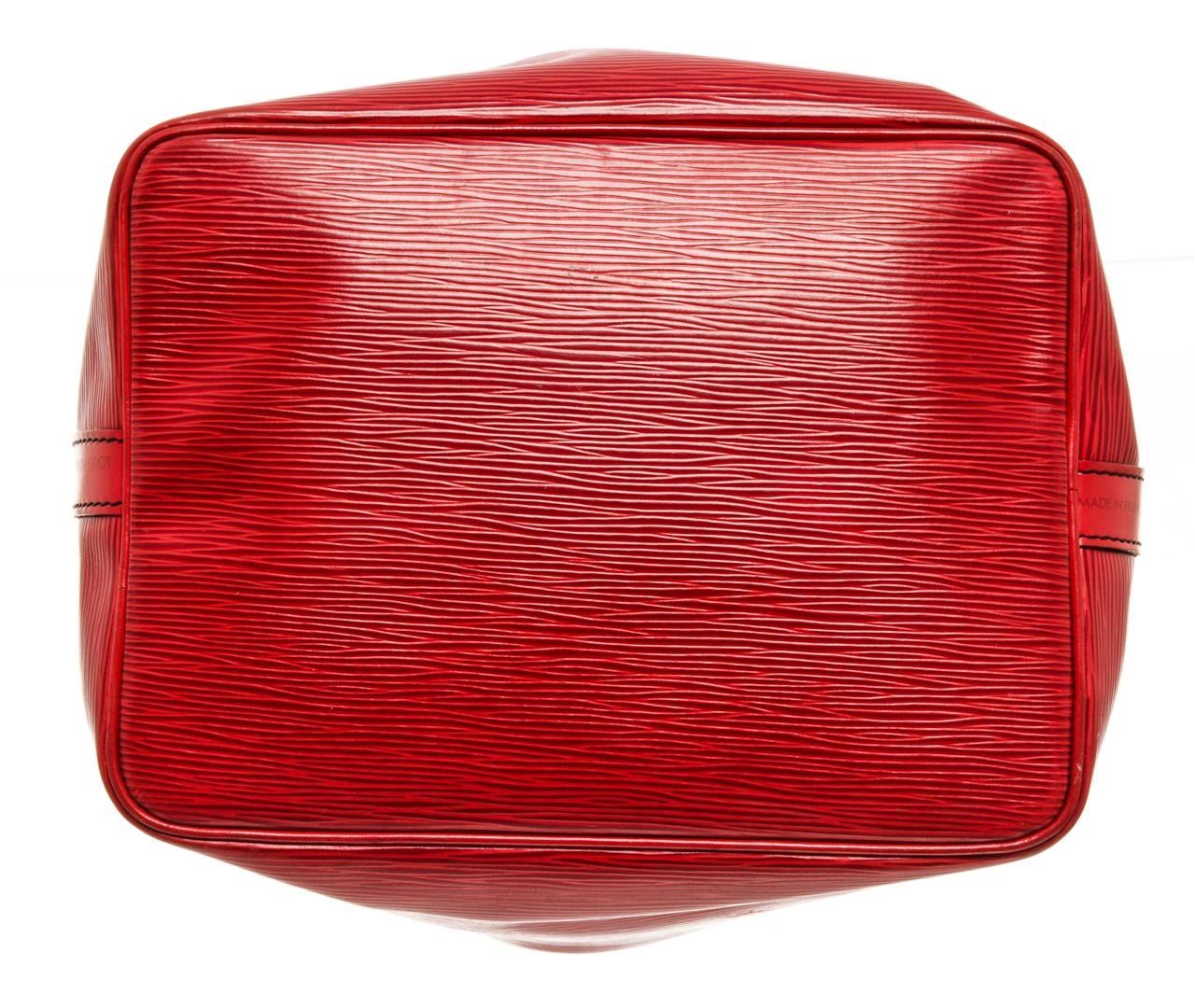 One Louis Vuitton Red Epi Leather Petit Noe Shoulder Bag. Item is sold AS-IS. All available information is listed in the description and shown in the photo. louis vuitton red epi leather petit noe shoulder bag 28cm x 23cm x 17.5cm / 11.02" x 9.05" x 6.88" Inches