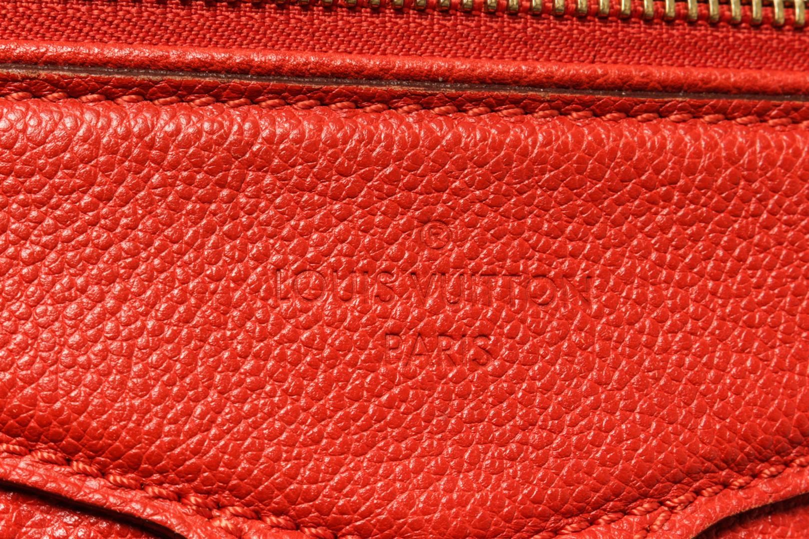 Louis Vuitton Red Leather Lumineuse PM Shoulder Bag. All available information is listed in the description and shown in the photos. louis vuitton red leather lumineuse pm shoulder bag with lumineuse pm features a monogram empreinte leather, an exterior front zip pocket flat leather handles, top zip closure, and interior zip pocket. Height: 11.02" Width: 13.38" Depth: 6.29", Handle Drop: 17" / 28 x 34 x 16 Cm