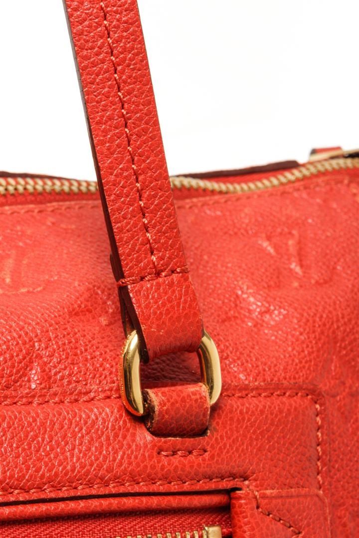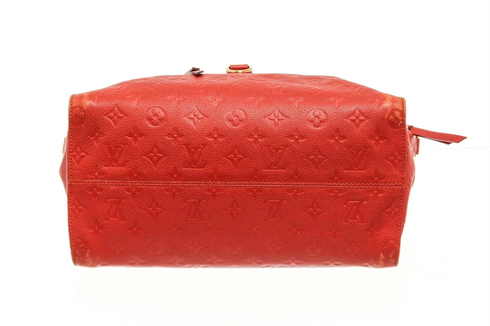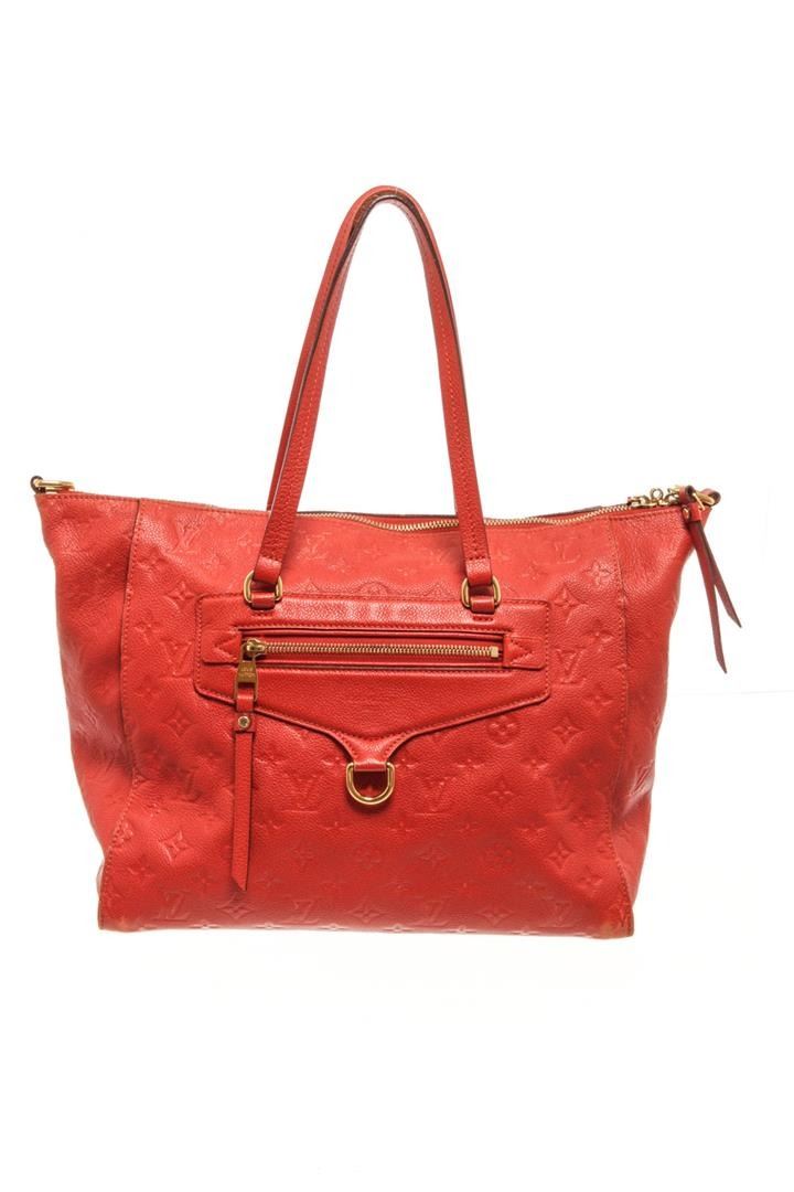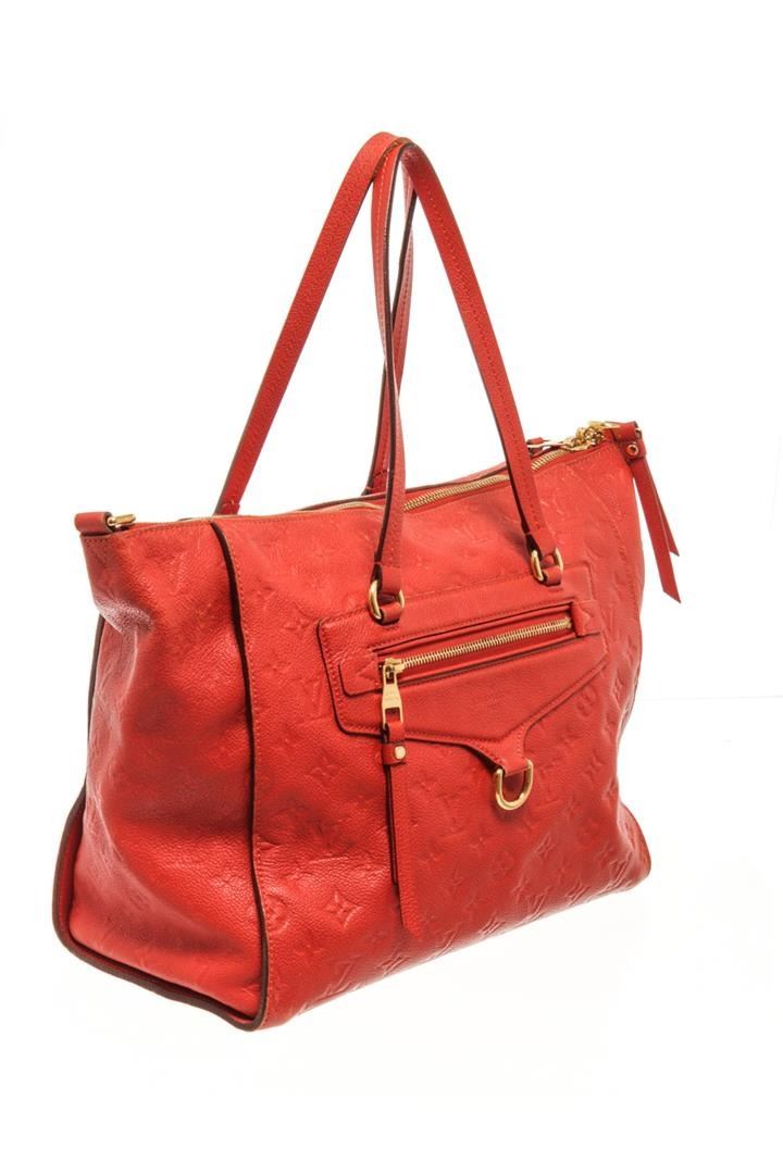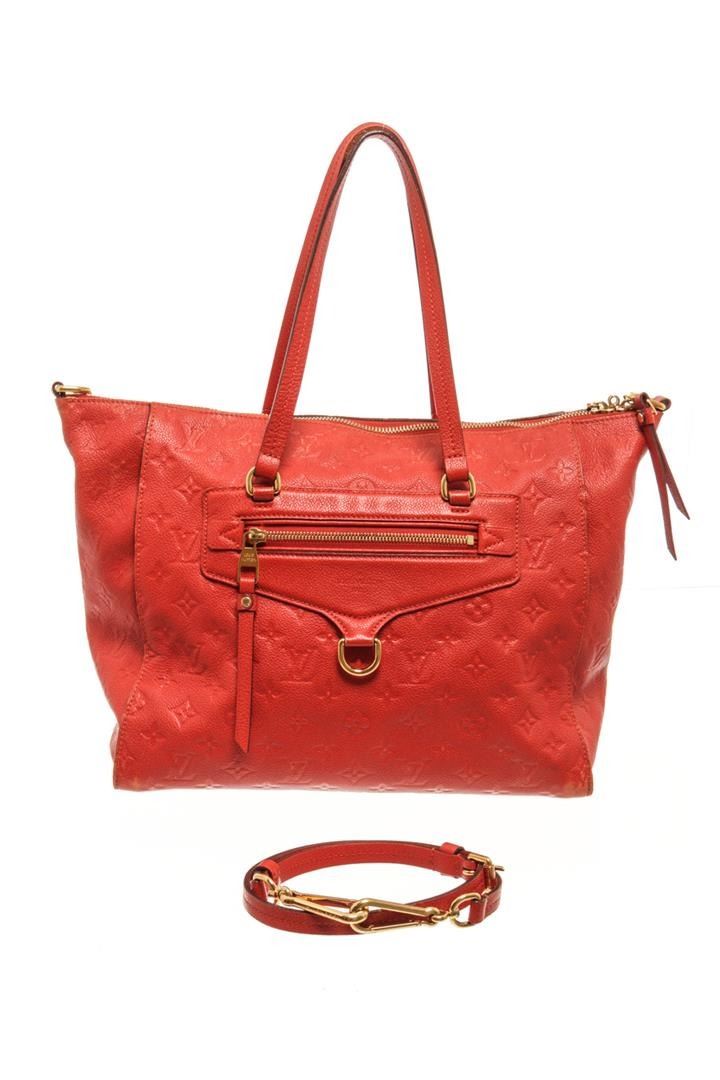 Louis Vuitton Red Leather Lumineuse PM Shoulder Bag. All available information is listed in the description and shown in the photos. louis vuitton red leather lumineuse pm shoulder bag with lumineuse pm features a monogram empreinte leather, an exterior front zip pocket flat leather handles, top zip closure, and interior zip pocket. Height: 11.02" Width: 13.38" Depth: 6.29", Handle Drop: 17" / 28 x 34 x 16 Cm