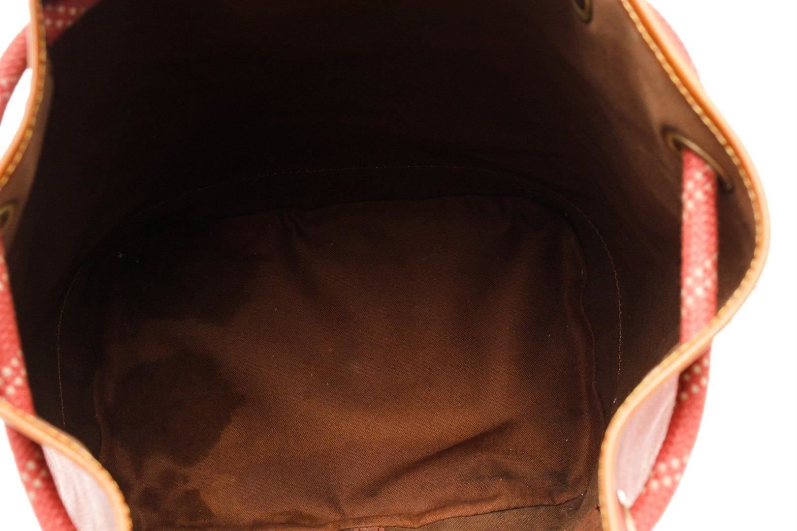 Louis Vuitton Red Leather Saint Tropez Cup Shoulder Bag with leather, gold-tone hardware, trim tan vachetta leather, interior slip pocket, shoulder strap and drawstring closure.
